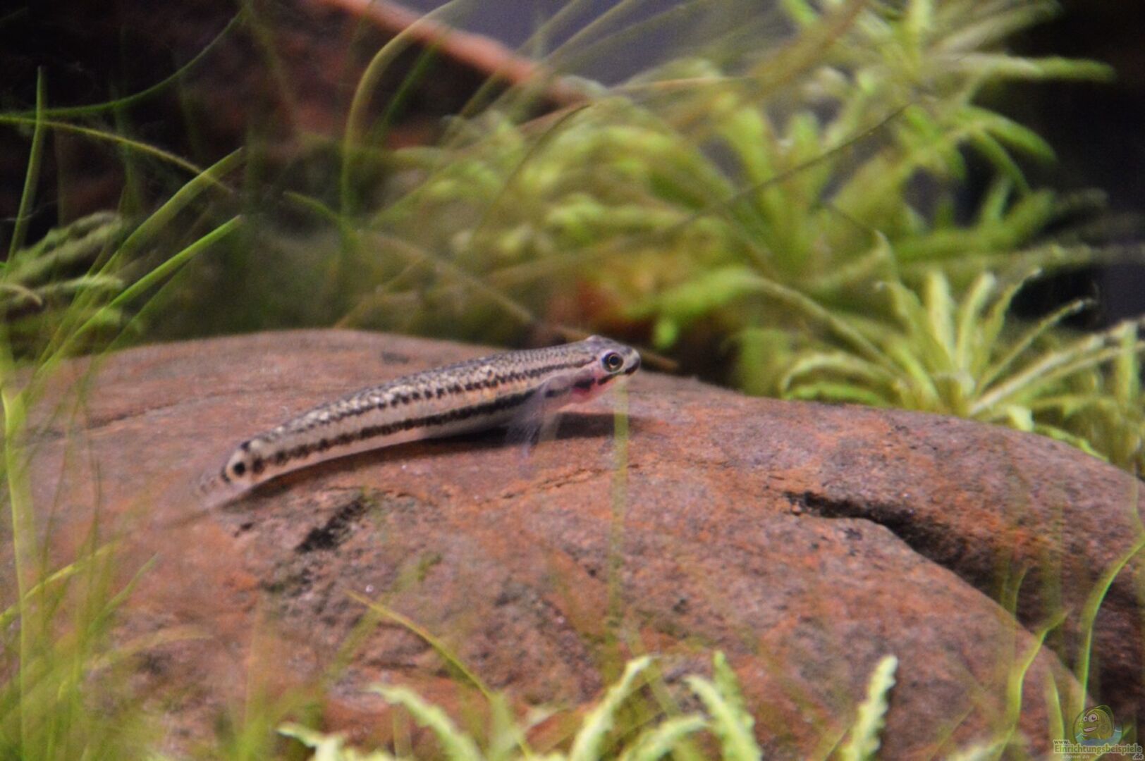 24.05.2017 Es sind insgesamt 7 junge Grundeln, die nun etwa 4 bis 5cm lang sind und werden langsam geschlechtsreif (bisher hat sich ein Männchen ausgefärbt). Die Alttiere haben zwar noch häufiger abgelaicht, aber aus diesen Gelegen ist scheinbar nichts geworden. Ich gehe davon aus, dass die halbwüchsigen Grundeln im Gegensatz zu den ausgewachsenen Tieren durchaus Jagd auf ihre kleinen Geschwister machen (Da ich nicht endlos viele Grundeln heranziehen möchte, finde ich das auch nicht weiter schlimm).