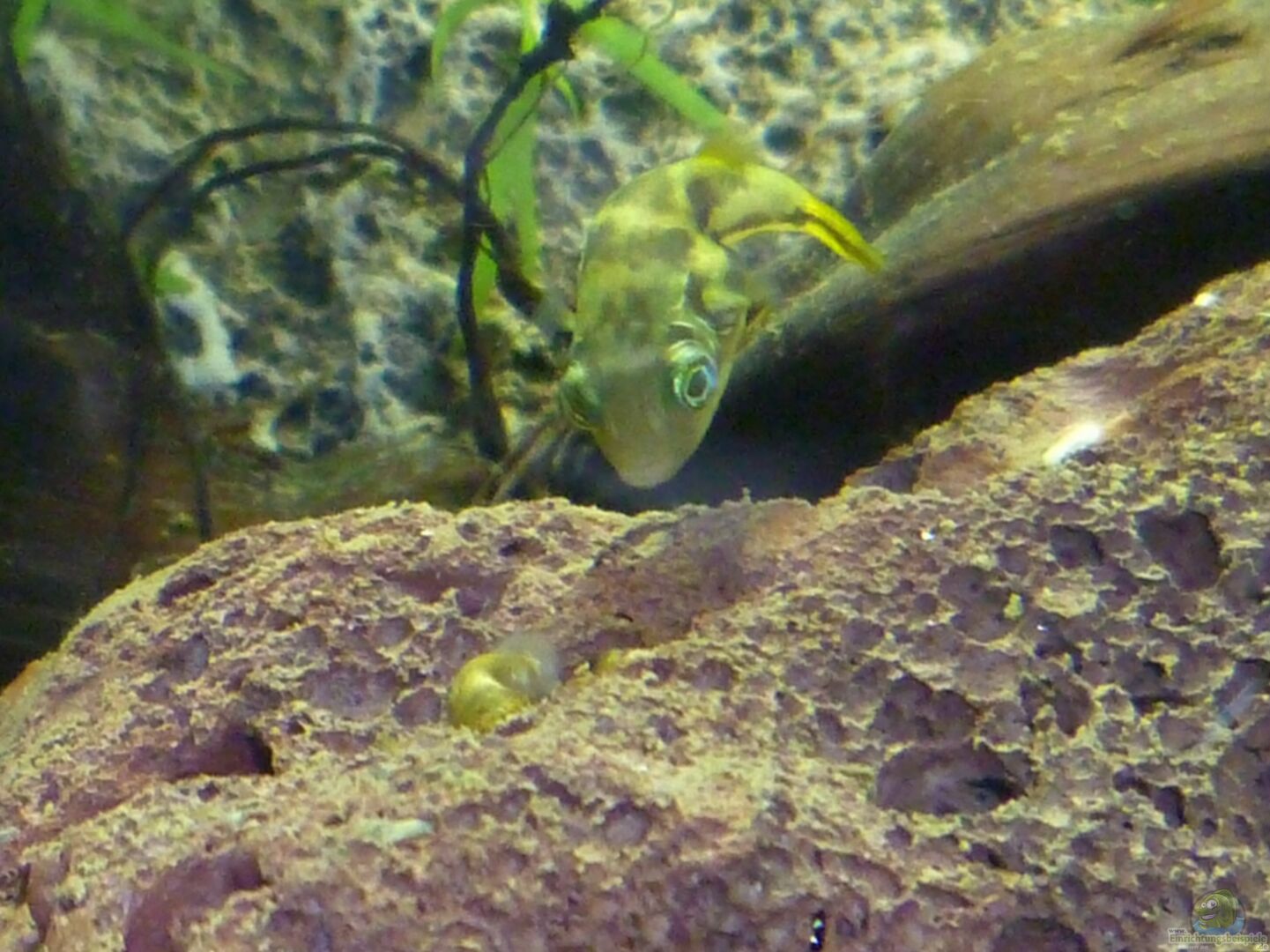 Aufgrund der kleinen Dimensionen des Aquariums soll der Besatz auch so bleiben. Bei den beiden kleinen Süsswasserkugelfischen handelt es sich um ein männliches und ein weibliches Tier. Die Geschlechtsunterschiede können im eigenen Blog nachgelesen werden. Um eine Zucht zu ermöglichen wurde noch ein Miniaquarium mit einem effektiven Volumen von ca. 18l (mit Schwammfilter und Thermostat) angeschafft. Ggf. kann es aber auch als Quarantäne- oder Behandlungsbecken dienen.