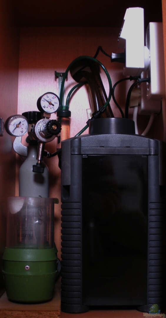 Mit der alten Pumpe, bzw den ungewaschenen Filter wieder hochgefahren. Wasser zugeabe mit 30 l Altwasser, den Rest mit Leitungswasser und dest. Wasser aufgefüllt.