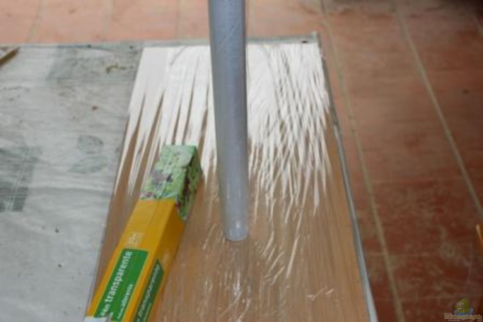 2.Hoy llovia, y no hemos podido trabajar en el huerto de casa. Hemos aprovechado con mi hermano, la mañana, para la construcción de un molde de madera con las medidas interiores precisas del acuario, para montar en su interior toda la estructura solida. Las maderas han estado cubiertas con film de plástico de cocina, para facilitar el desmoldeado.