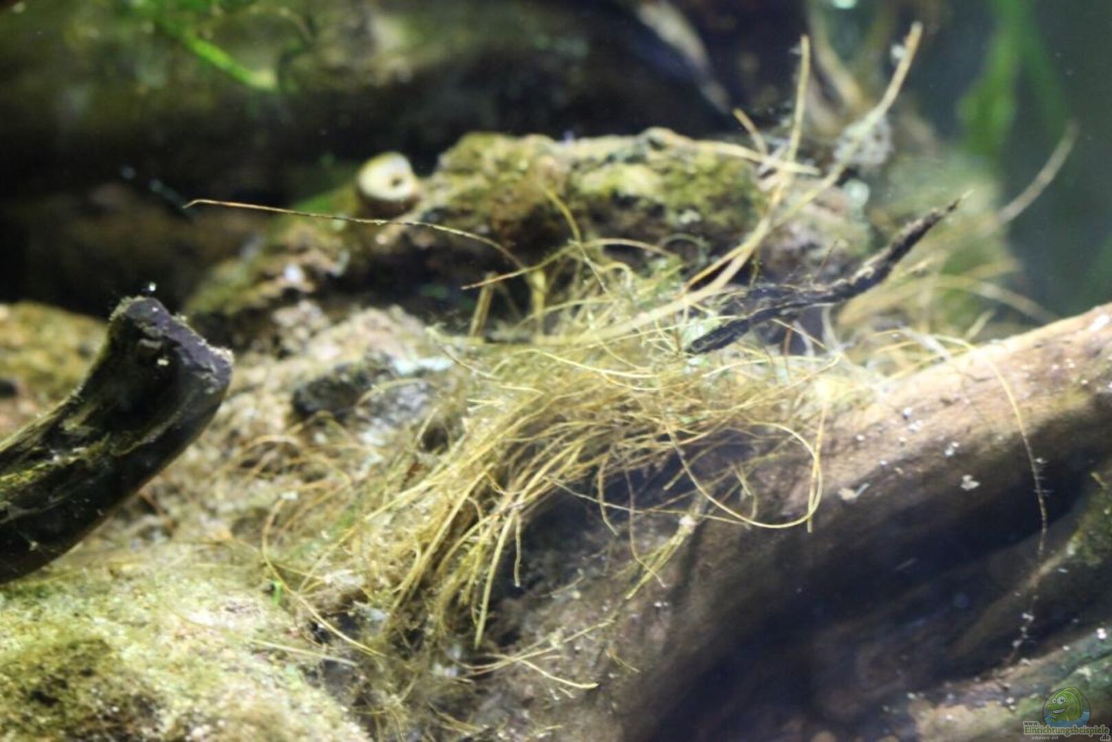 10/05/2014 En superficie, se observan alevines de la eclosion de las dos primeras puestas. Continuan los problemas con las algas, sin embargo prefiero dejarlas en el acuario sin tratar, en estos momentos hay dos puestas recien eclosionadas y una en un nido de burbujas. Por lo tanto no quiero hacer ningun tatamiento agresivo al acuario, ni quimico ni fisico. Para limpiar el cristal anterior he adquirido un iman para efectuar la limpieza sin provocar grandes movimientos de agua.