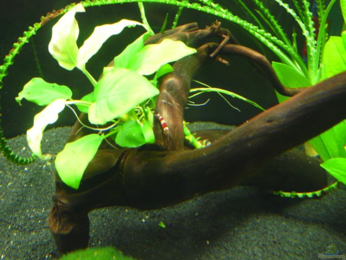 Zur Zeit dient es noch als ??bergangsbecken für 1 Red Fire Zwerggarnelen und 2 Crystal Red Zwerggarnele. Ihr Becken war voller Planarien und fast alle Zwerggarnelen sind nach und nach verstorben. Hoffe die Kleinen nach der Neueinrichtung sowie Plaunarienbekämpfung wieder in ihr altes Becken setzen zu können. Am 13.03. wurde der Besatz der Red Crystal Garnelen auf 7 Tiere aufgestockt. Habe mich dazu entschieden keine Red Fire mehr zu pflegen. Die "letzte" ihrer Art bekommt bei mir einen ruhigen Lebensabend.