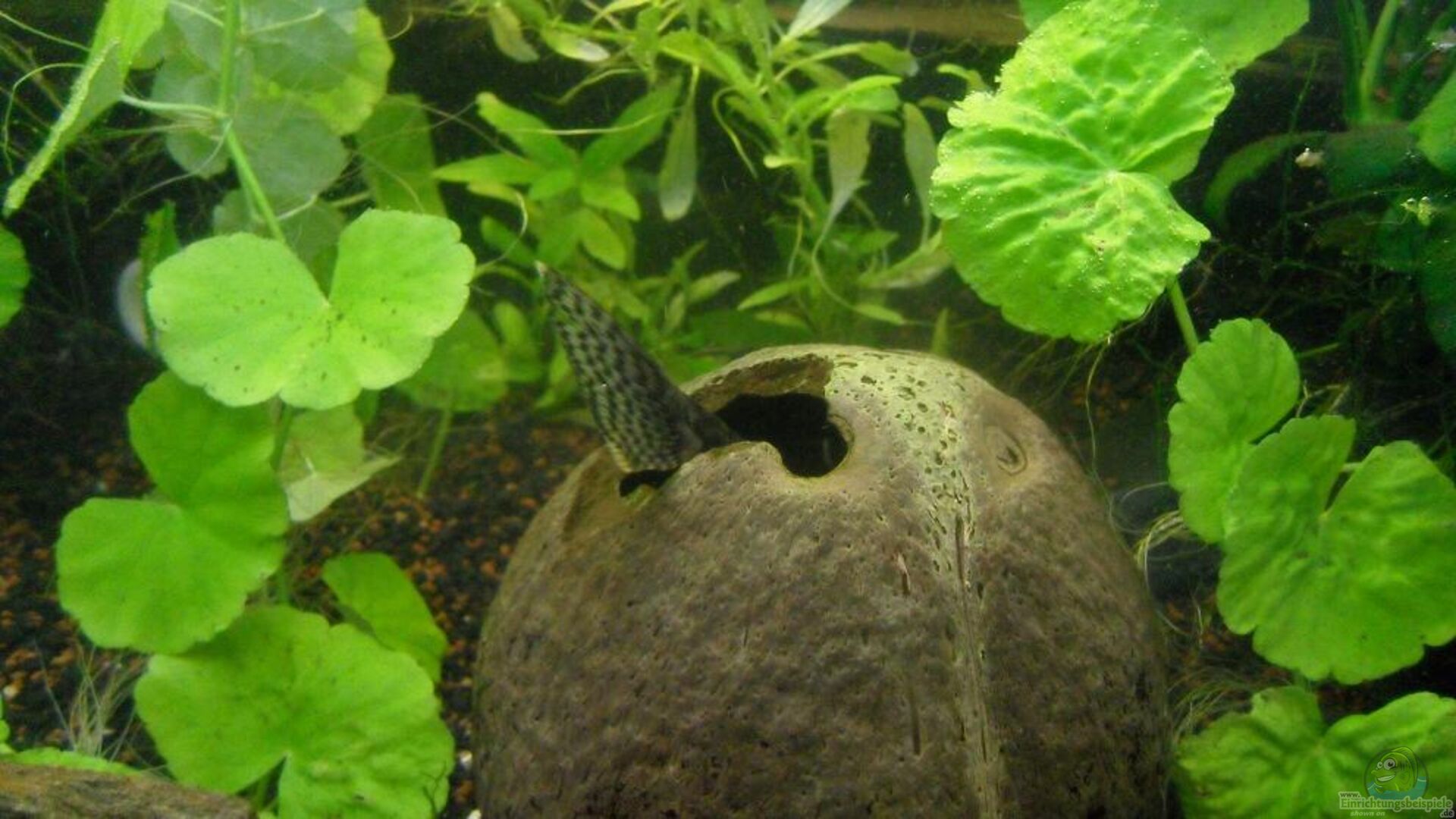 Weiterhin habe ich eine kleinere Wurzel (soll aber bald in ein kleines Becken in welches ich ein KaFi halten möchte) und eine Kokosnuss, diese wird immer als Brutstätte meiner Welse auserkoren.
