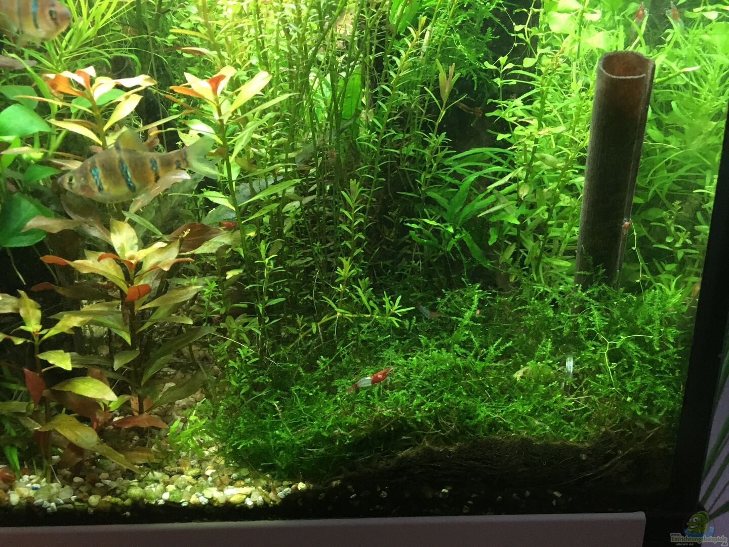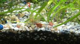 Eine unbekannte Anzahl Orange Rilli und Red Rilli Zwerggarnelen, Startbesatz waren jeweils 10 Stück, Nachwuchs kommt immer wieder durch.