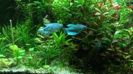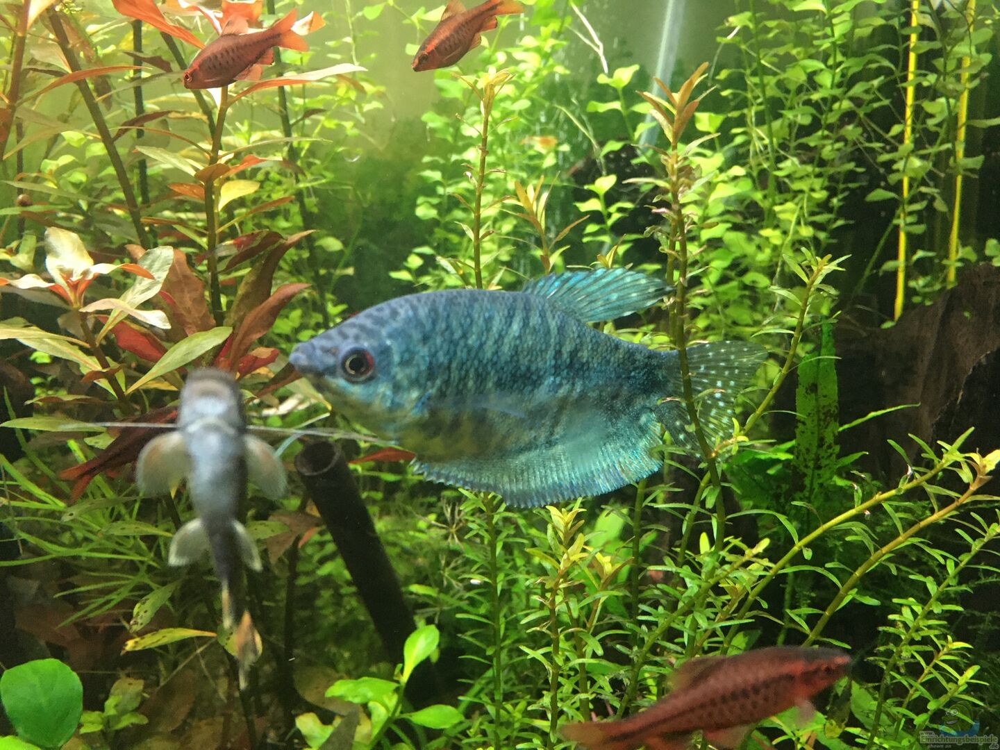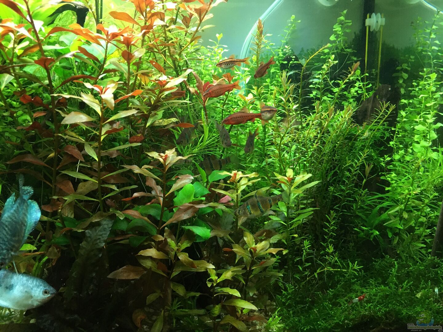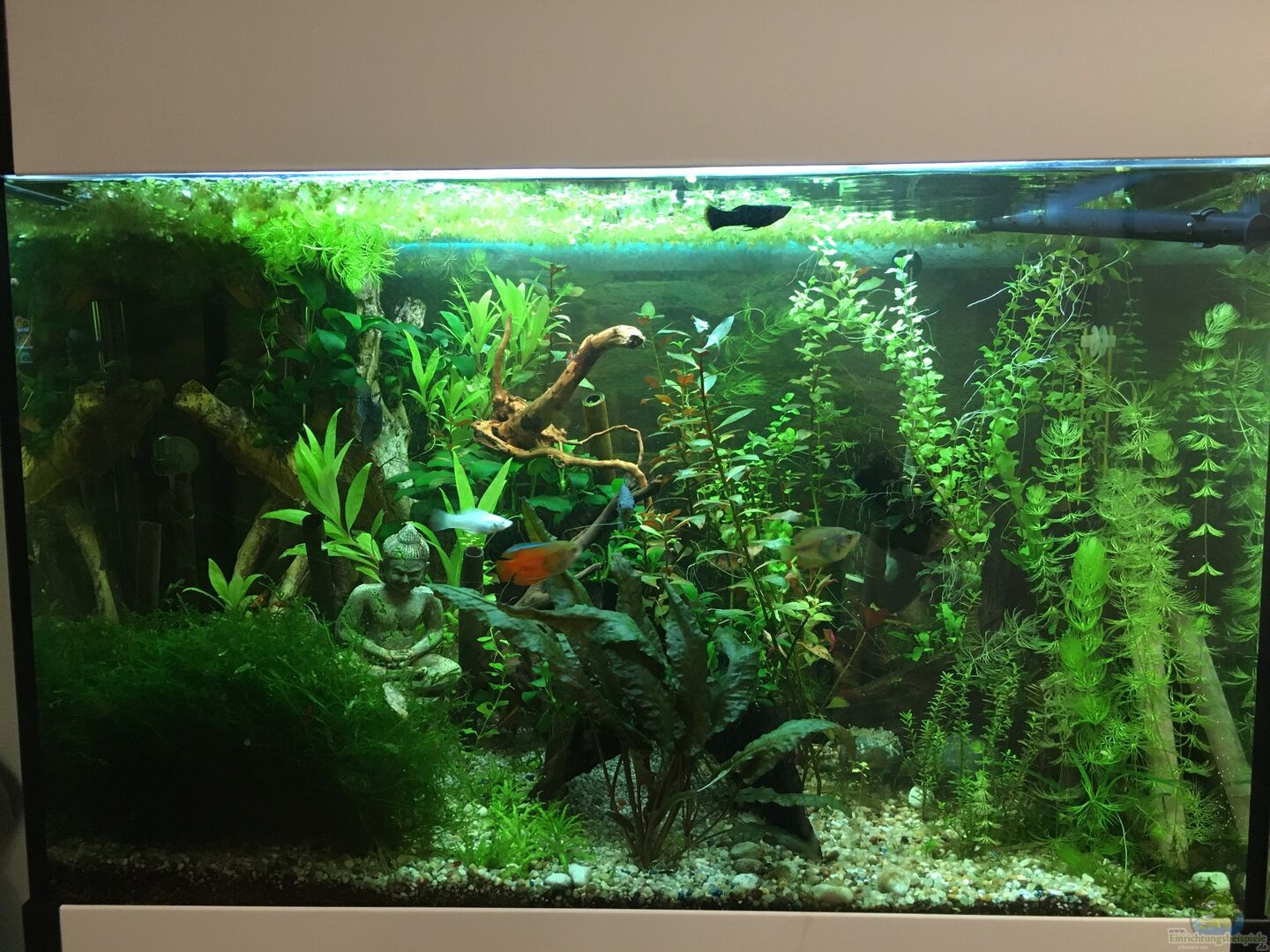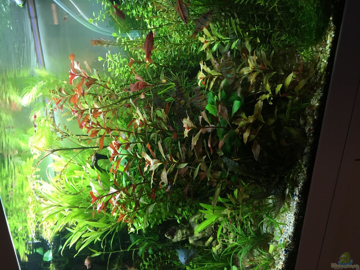 Besatz etwas verkleinert, das hei??t ich habe das Zwergfadenfischpärchen abgegeben da es zu oft zu Reibereien mit den Fadenfischen kam. Jetzt ist es etwas ruhiger im Umfeld geworden. Leider ist der Black Molly aus ungeklärter Ursache verstorben, keine äu??erlichen Anzeigen von Krankheiten.