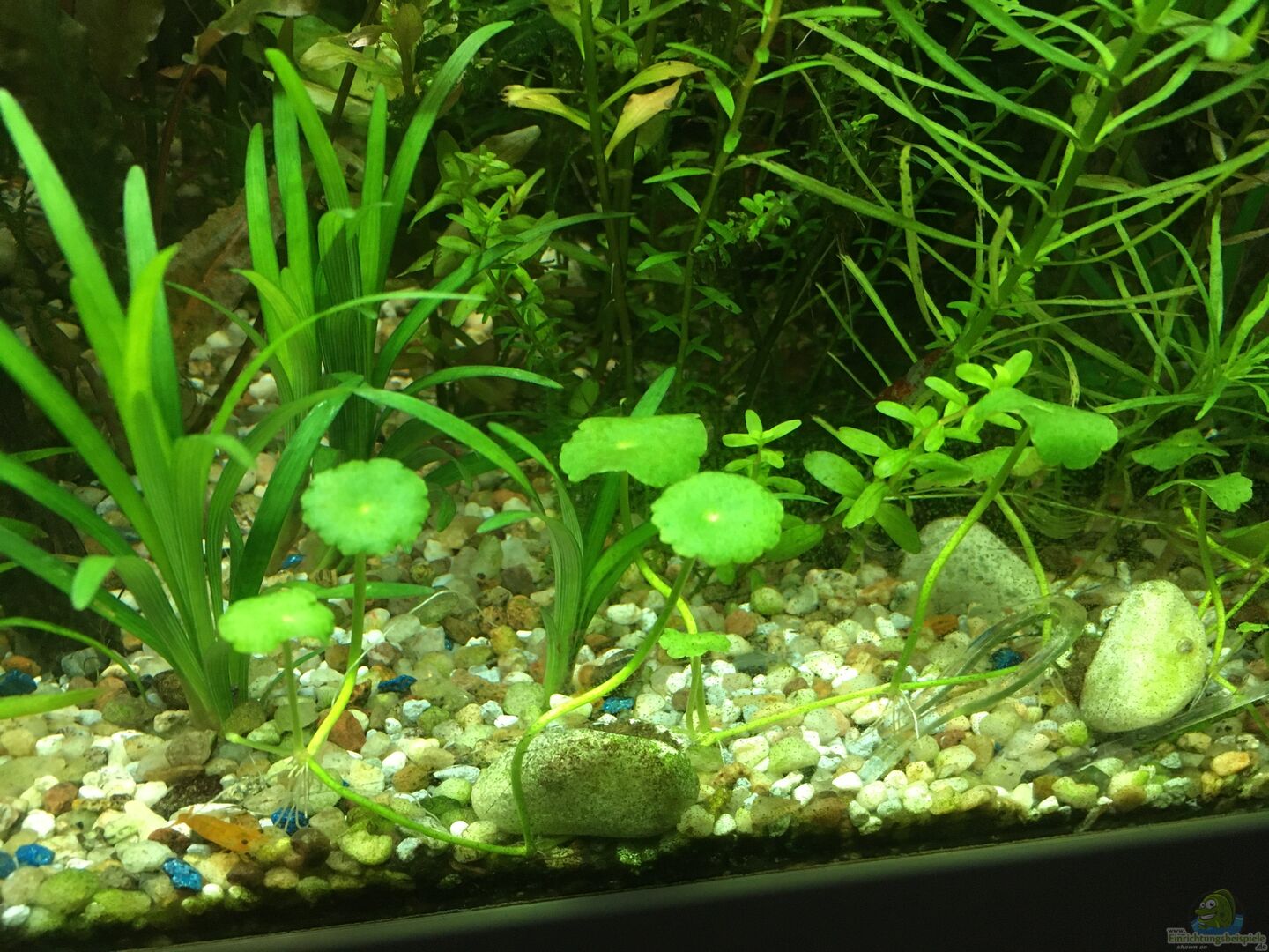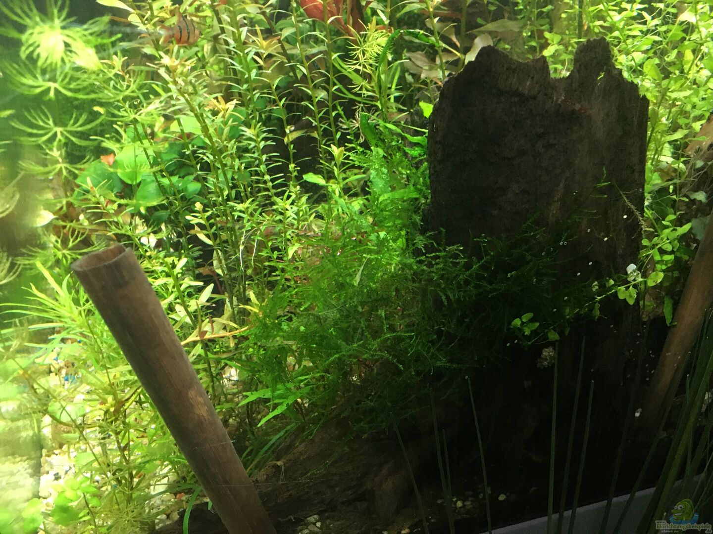 Spiegelfolie unter der Abdeckung zwecks etwas besserer Ausleuchtung. Den Unterschrank habe ich wei?? foliert, finde da kommt der Inhalt besser zur Geltung. Ursprünglich ist der Schrank buchefarben. Ich habe das Becken von einer älteren Dame übernommen, die es zwecks Umzug nicht in die neue Wohnung mitnehmen konnte. So bin ich mehr oder weniger in die Aquaristik hinein gestolpert. Anfang diesen Jahres folgte ein zweites Becken mit 38 Litern. Dieses werd ich in naher Zukunft ebenfalls vorstellen.
