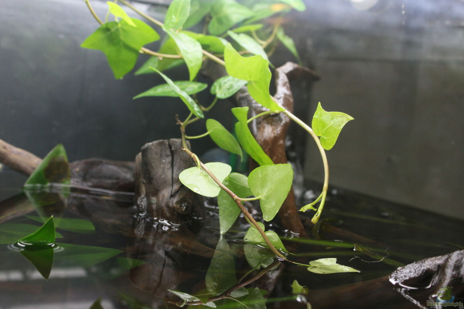 Die Pflanzen wurden so ausgewählt das bei der weiteren Entwicklung des Beckens zum einen etwas Schatten auf die Beckenmitte fallen kann und der Iwagumi-Teil umwachsen werden kann. Die flutende giganthea ihrerseits kann den Wurzelbereich verwildern..