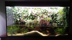 Die Besonderheit bei diesem Becken liegt an seinem relativ niedrigen Wasserstand von ca. 22 cm, aber einer doch recht grossen Grundfläche. Die Rückwand besteht aus mit Silikon verklebten Xaximplatten. Das Becken samt Rückwand gibt es schon länger, seit ca. 5 Jahren, und wurde bisher 2 mal umgestaltet. Das Becken hiess vorher Along the riverside. Das Problem war, dass der Wasserstand zu niedrig, und dass aufgrund des Landteils das Wasservolumen zu gering war. Auch war mir die Pumpenleistung, der fest mit dem damaligen Bodenfilter eingebauten Strömungspumpe zu gering.