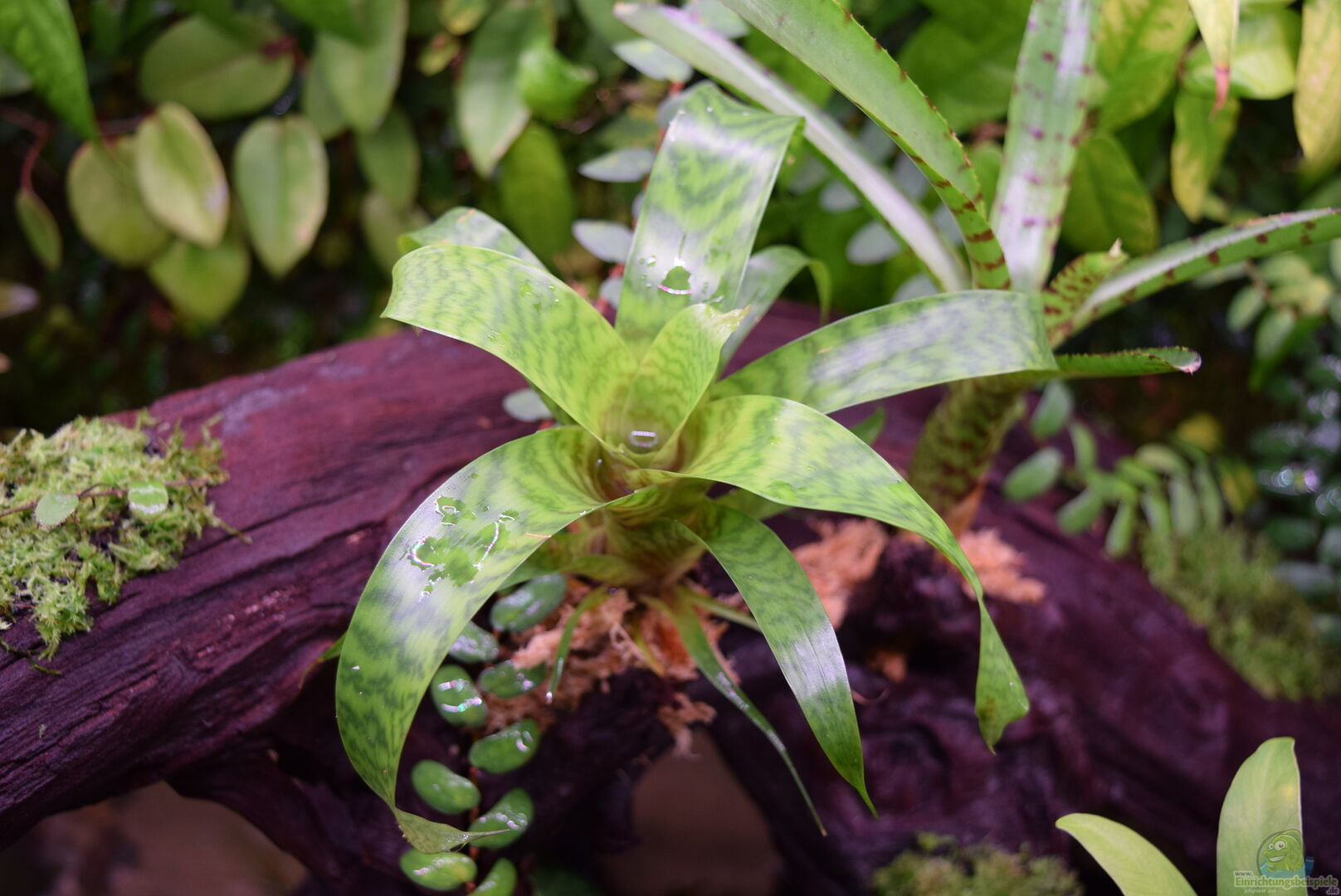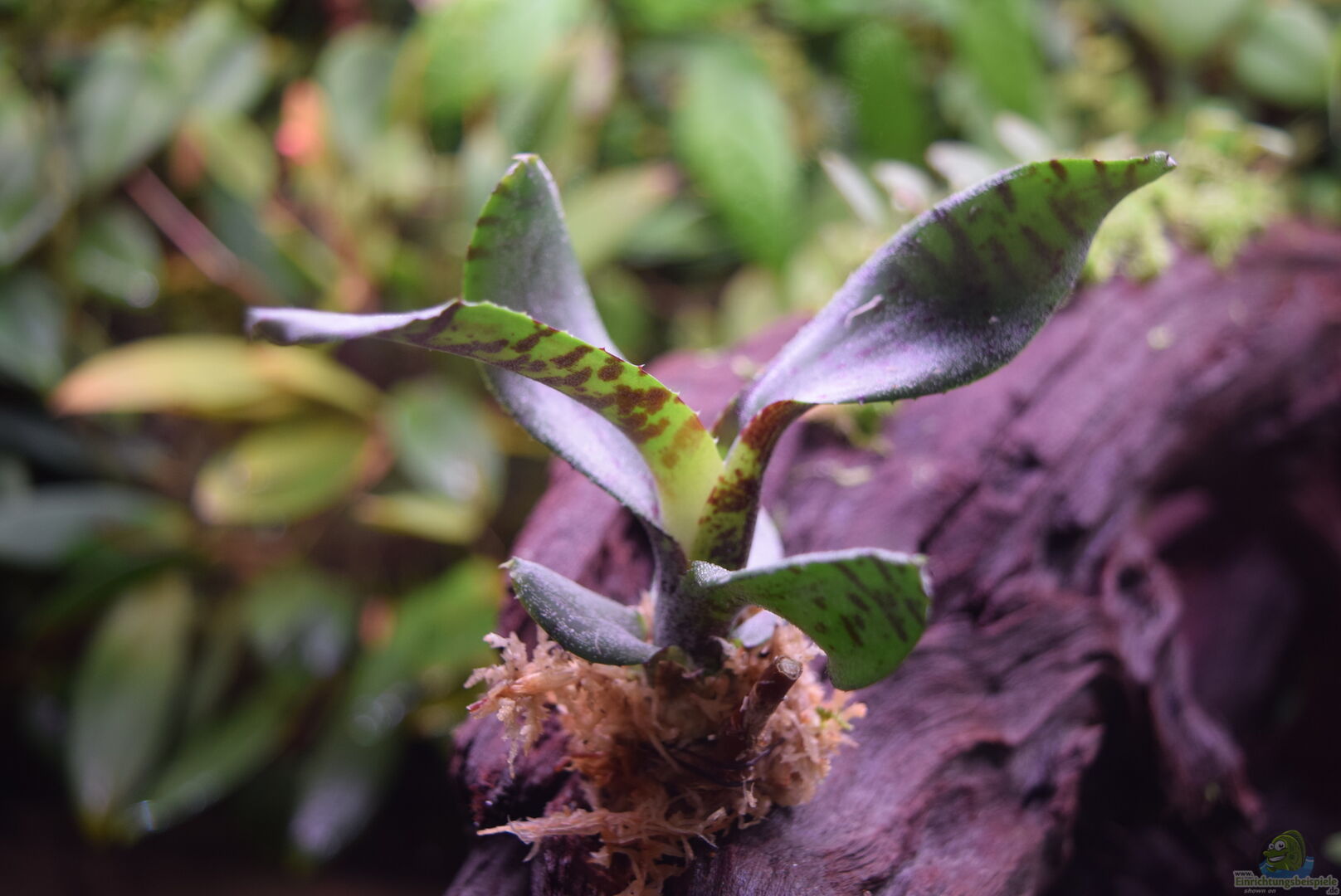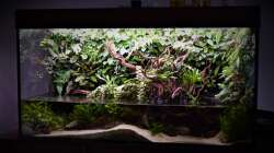 Das Sphagnum hab ich aus einem anderen Terrarium geerntet und mit Hygrolon an der Mangrovenwurzel befestigt. Hygrolon ist ein mehrteiliges Gewebe, was sehr gut das Wasser speichert und dem Moos somit dauerhaft Feuchtigkeit zur Verfügung stellt.