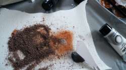 Da das Regenwetter zum weiterbasteln auffordert, bin ich dem gern nachgekommen und habe heute die erste Lackschicht auf das Wasserfall-Modul aufgebracht.