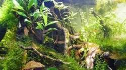 An den Lavasteinen und den dünneren Wurzelstücken hat sich ein leichter Algenflaum entwickelt. Das gefällt mir sehr gut, wirkt doch dadurch alles noch natürlicher.
