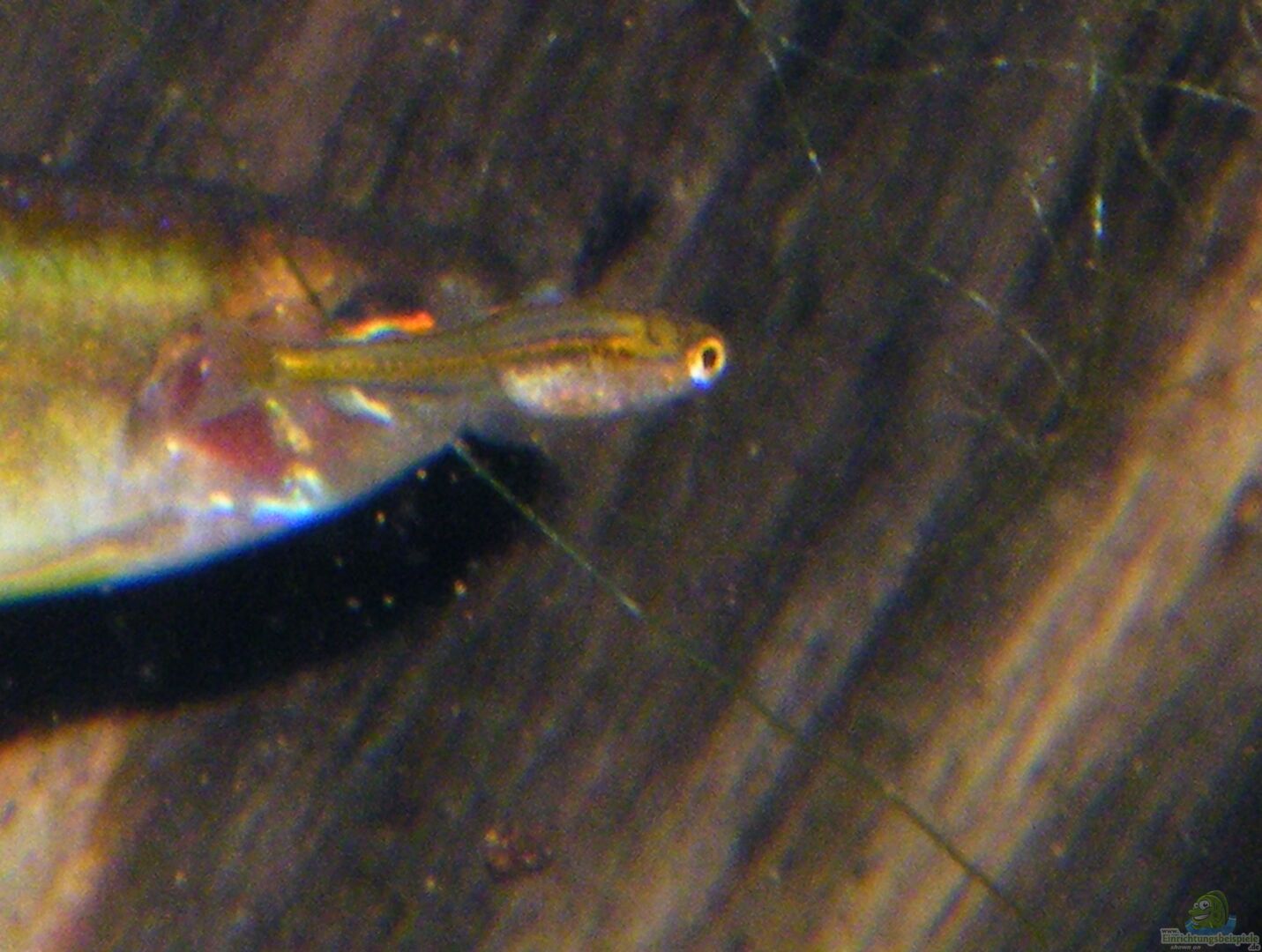 Die jungen Danio Choprae sind nun ca. 12 mm lang und schon flei??ig im gesamten Becken unterwegs. Einige neue Larven sind dazugekommen. Wenn die ersten Nachwüchsler so weit sind, dann dürfen sie zu neuen Haltern umziehen.