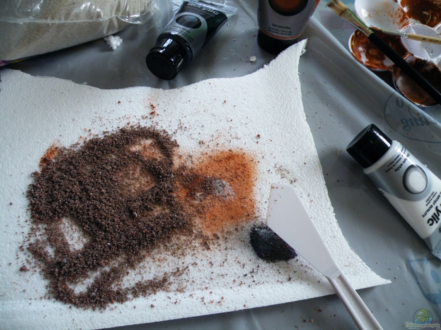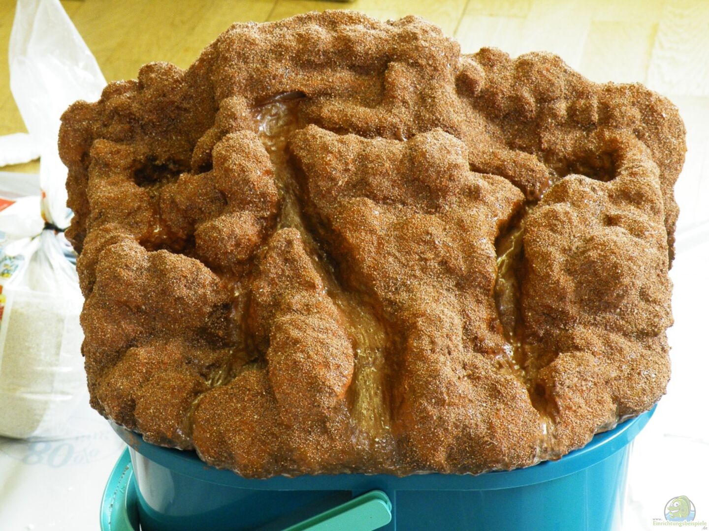 Das Wasserfallmodul ist fast fertig. Der eingefärbte Sand ist mit der zweiten Lackschicht aufgetragen. Nun fehlt noch die 3. Lackschicht auf den Wasserrinnen sowie die Versiegelung der Unterseite.