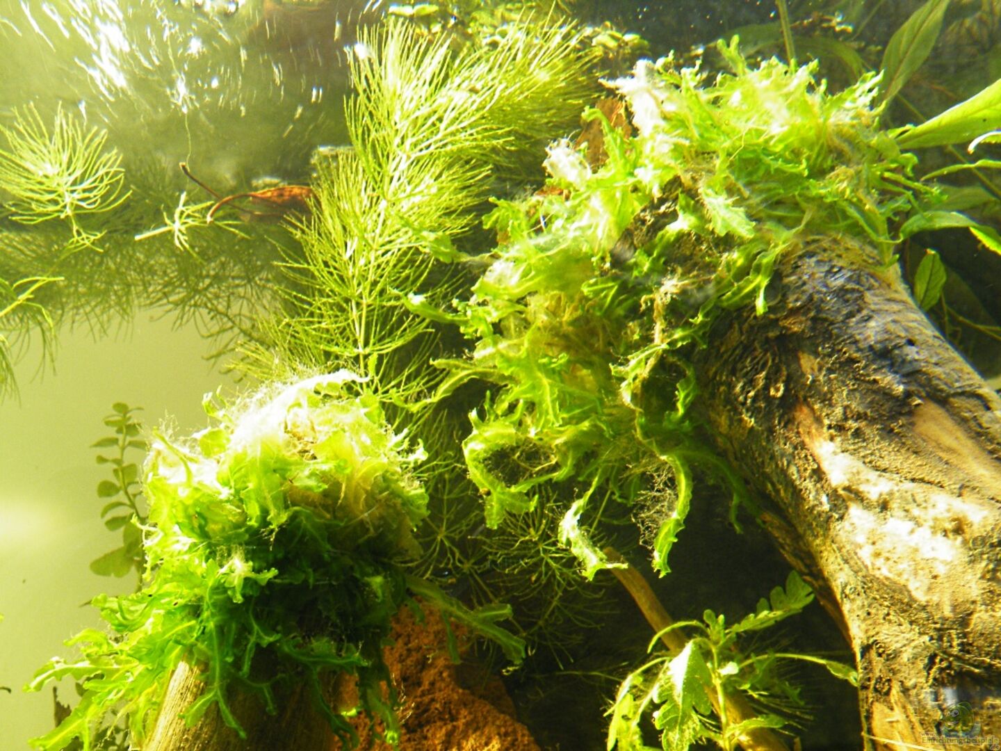 Am Wochenende muss ich unbedingt mal wieder gärtnern. Das Moos in diesem Becken wächst wahnsinnig stark. Ebenso die Schwimmpflanzen. Ich muss aufpassen, dass sie mir nicht das ganze Licht für die darunter befindlichen Pflanzen weg nehmen. Immer wieder entferne ich Teile der Schwimmfarne, aber nach einer Woche sieht es fast aus, wie vorher.