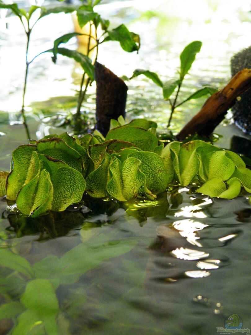 Da die Pflanzen mittlerweile sehr lang und hoch gewachsen sind, wird auch die Wasserobefläche von ihnen eingenommen. Deshalb habe ich - bis auf das schwimmende Riccia und einige kleine Muschelblumen-Ableger die Schwimmpflanzen wieder entfernt.