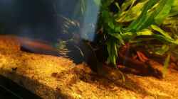 Das Aquarium ist nur zur Hälfte gefüllt und soll einen Uferbereich darstellen.