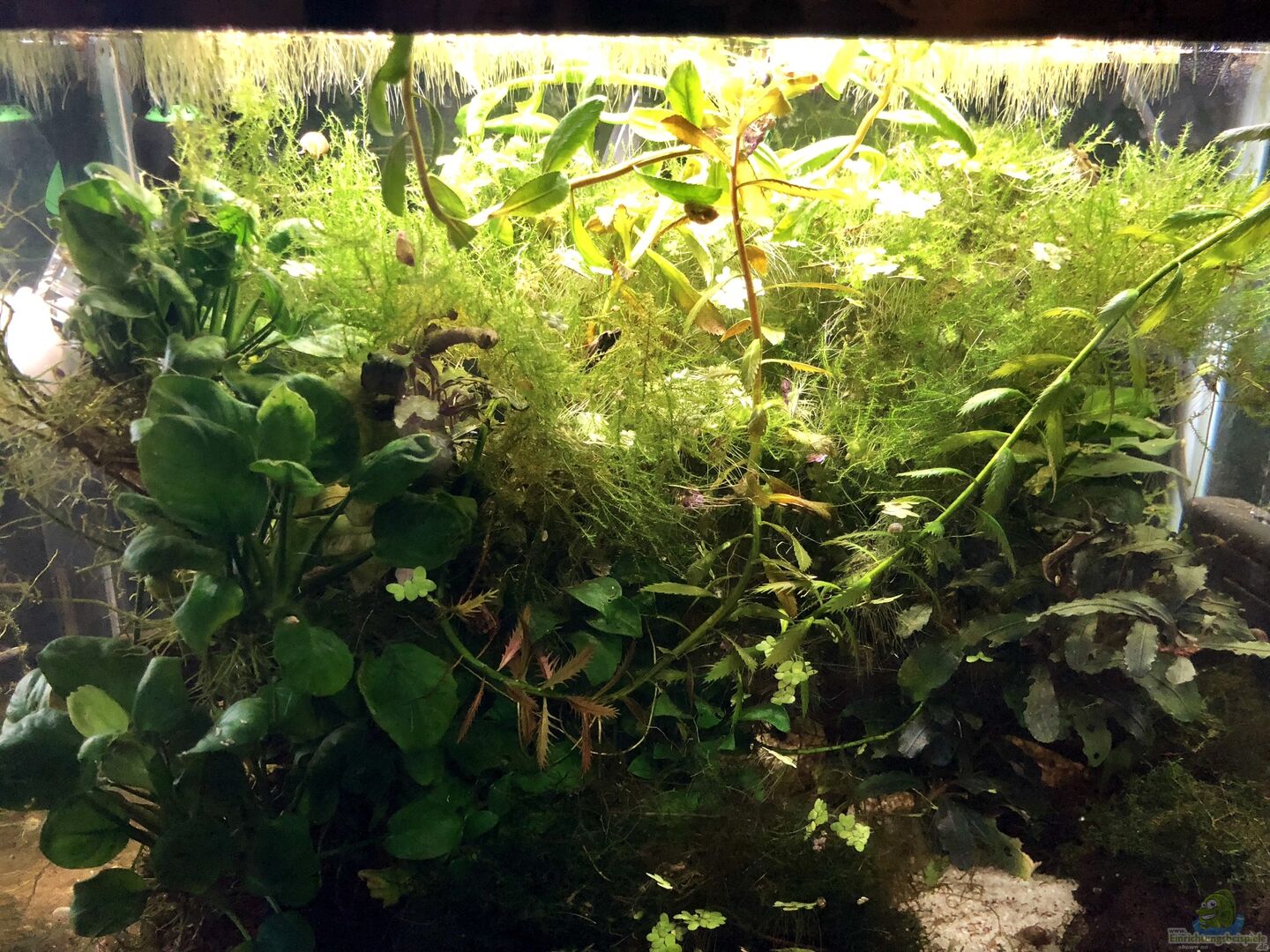 03.06.2018 - Die Algen sind gänzlich verschwunden und die Pflanzen wachsen sehr gut! Leider sind aufgrund des Algen-Schwundes (ich vermute es mal), auch die Brotia verschwunden. Doch der Kampffisch und die Blasenschnecken gedeihen soweit gut.