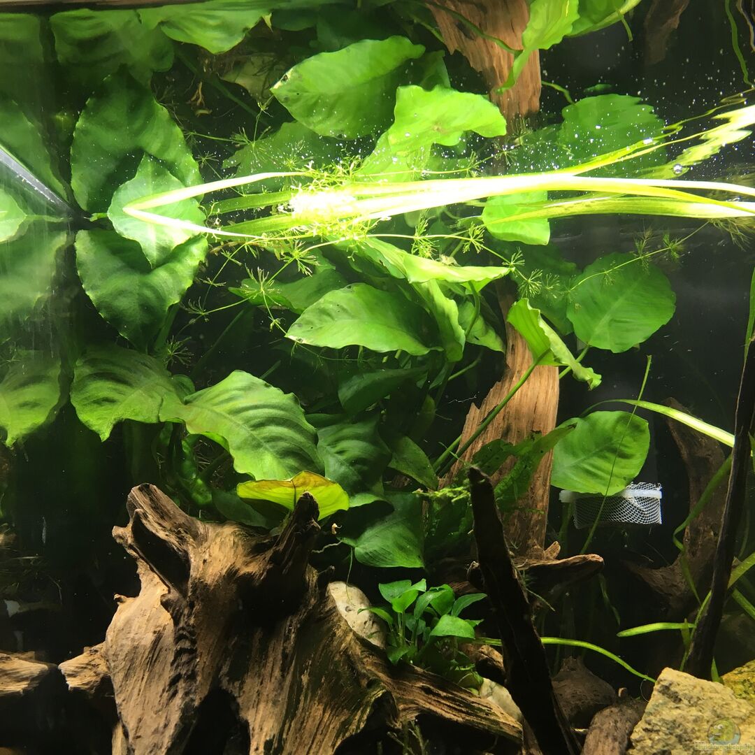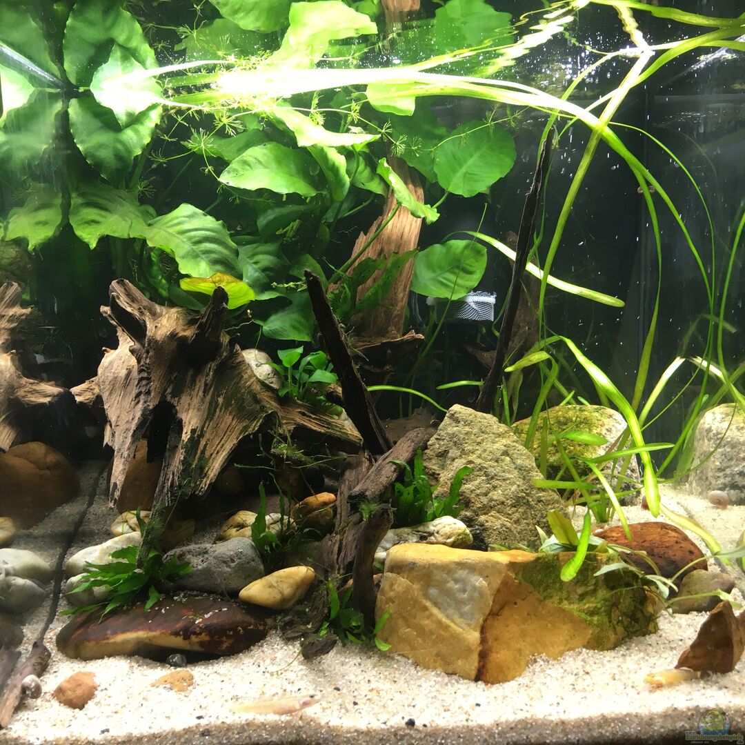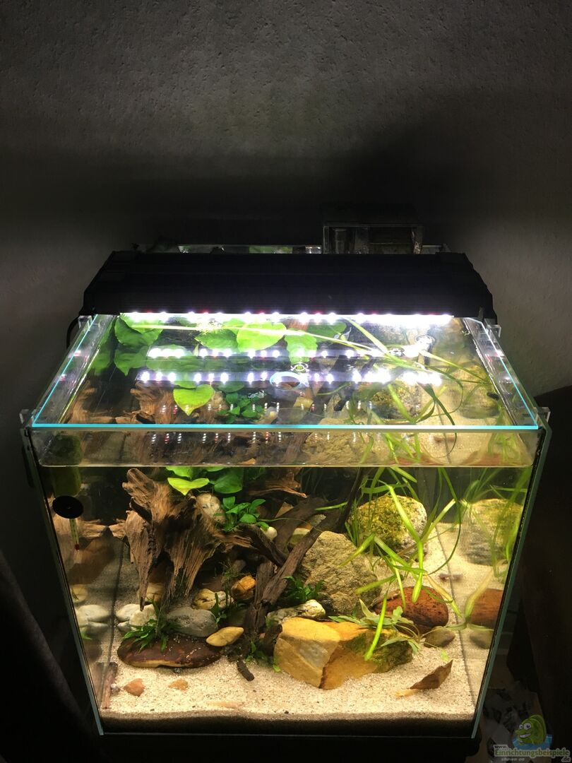 Der Wasserspiegel ist etwas tiefer, damit das Wasser vom Rucksackfilter ordentlich einschiesst für Strömung und Sauerstoff. Aus dem Grund läuft noch zusätzlich auch der Nano-Eckfilter mit.