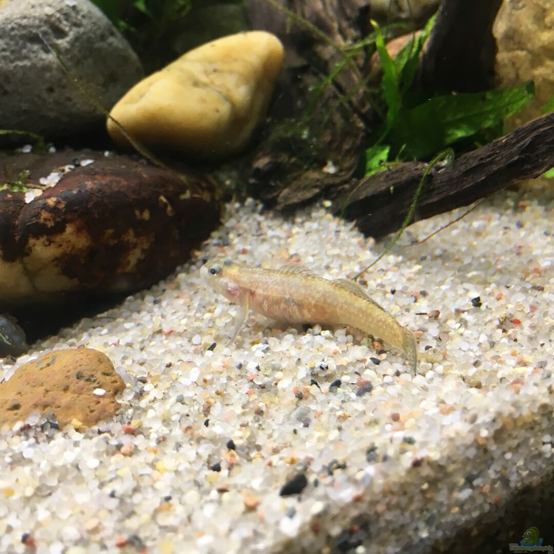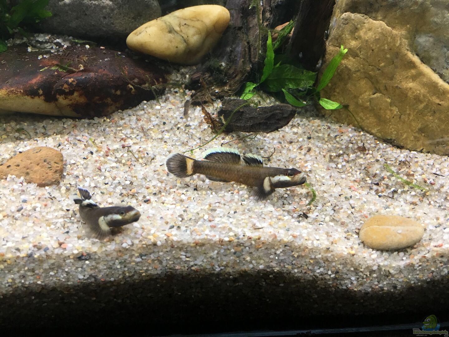 Die Grundeln sind eine unbeschriebene Art aus der Guanxi-Region in China. Sie mögen kühles und sauerstoffreiches Wasser. Ich halte sie im Artenbecken, aber eine Vergesellschaftung mit passenden Fischen ist wohl unproblematisch. Sie sind aktiv und zutraulich. Wenn ich zum Becken gehe, schauen sie neugierig, was wohl jetzt als nächstes passiert. Verglichen mit anderen Raubfischen sind sie jetzt nicht die allergrö??ten Jäger, ein weiterer Punkt der für ein Artenbecken spricht. Ich denke das flinke Schwimmer ihnen das Futter streitig machen würden. Sie sind wunderschön und es ist sehr unterhaltsam, ihnen beim Streiten, Posen und Herumhopsen zuzuschauen. Die Garnelen lassen sie bis jetz in Frieden, vermutlich werden sie sich aber doch die eine oder andere holen, wenn Garnelennachwuchs da ist. Aus dem Grund habe ich ein bisschen Hornkraut und Teichlebermoos im Becken, damit sie sich dahin zurückziehen können.