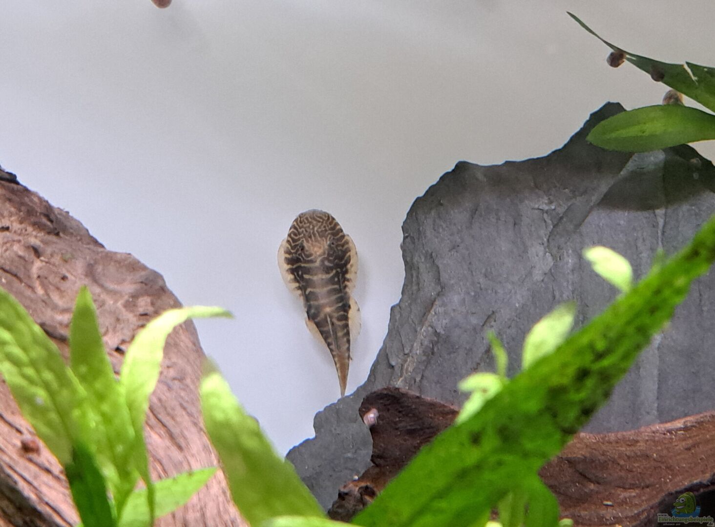 Die gelieferten Gastromyzon waren deutlich größer als erwartet und am Anfang extrem scheu.Habe deshalb zuerst meine beiden Schmetterlingsbarben und schließlich auch die kubotai dazu gesetzt. Für die Schmetterlingsbarben wurde das Becken im vorderen rechten Bereich durch Wasserpest etwas abgedunkelt und inzwischen sind alle Tiere gut unterwegs.In den nächsten Wochen werden vermutlich noch meine beiden blue fin aus dem anderen Becken hier mit einziehen.