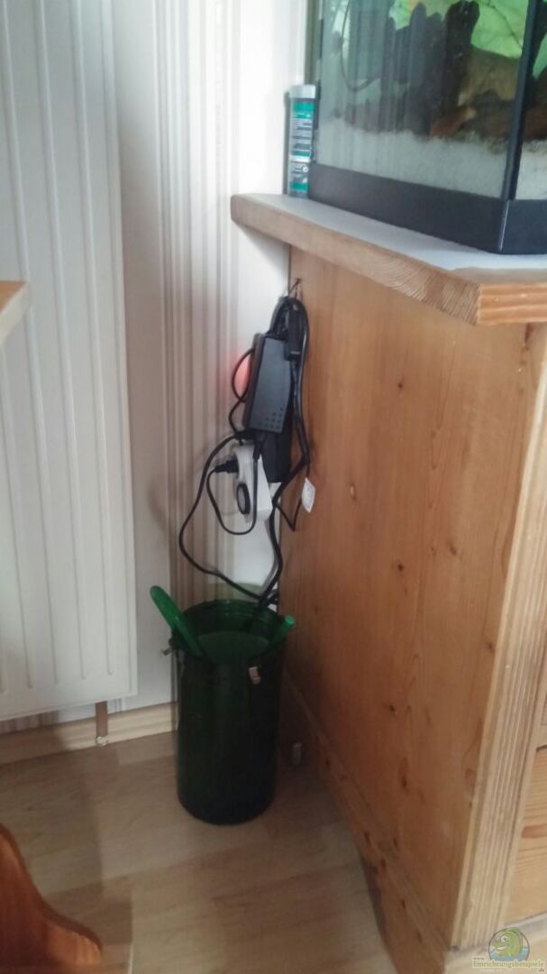 Die Woche hab ich den Eheimaquaball gegen einen Eheim 2213 Au??enfilter eingetauscht. Hab eine Verkleidung zum verstecken des Filters gebaut, weil der Schrank nur Schubfächer hat, musste ich ihn daneben stellen....