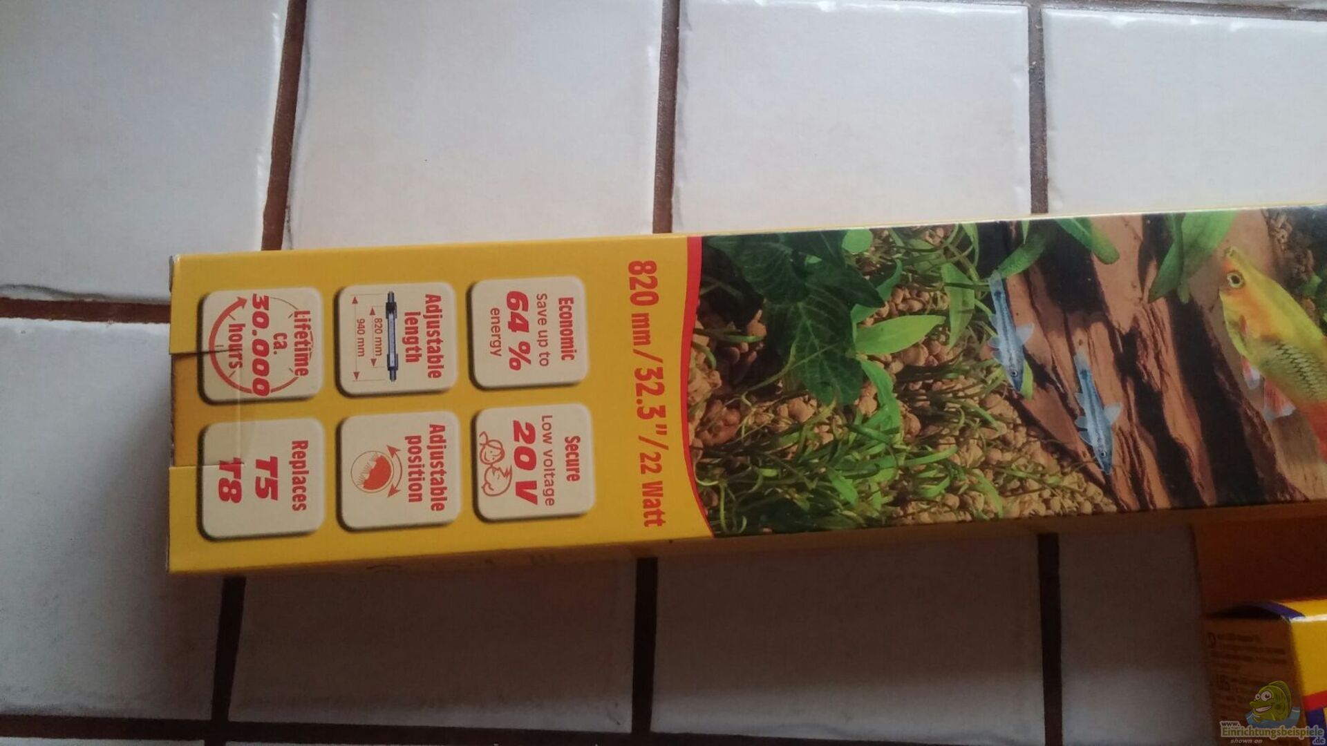 So die Neonröhren sind mit samt Technik ausgebaut und eine Sera daylight sunrise 820 mit T8 Adapter und Led Vorschaltgerät beleuchten jetzt das Becken. Ich hab 2 Led geplant, belasse es aber bei der einen. Das Licht gefällt mir sehr gut damit.