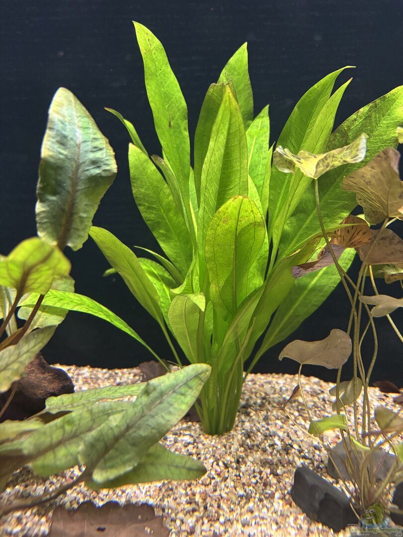 * 12.11.2021 noch zwei Echinodorus bleheri linksseitig an den Hintergrund gesetzt. Die Bepflanzung sollte damit abegeschlossen sein.