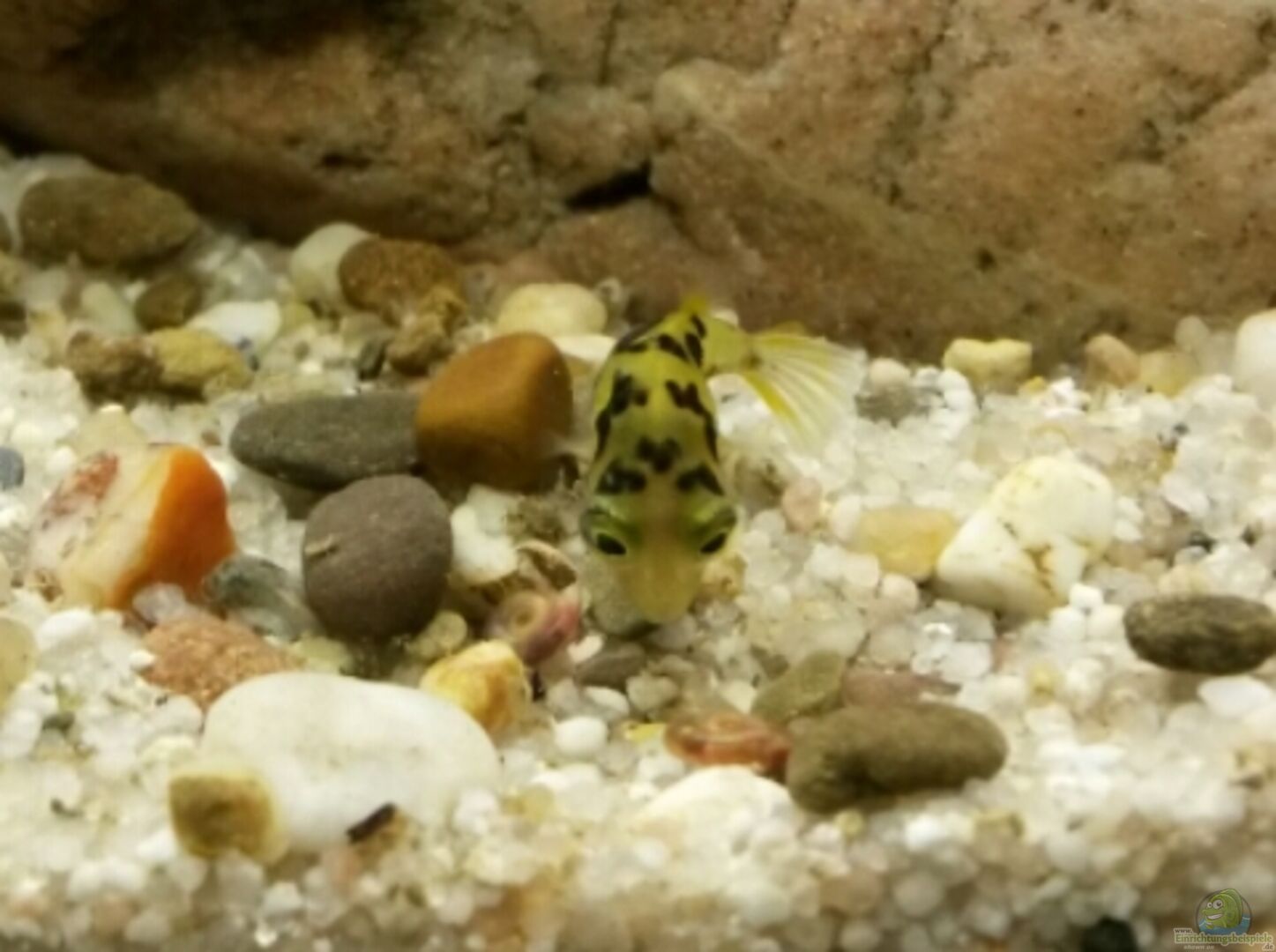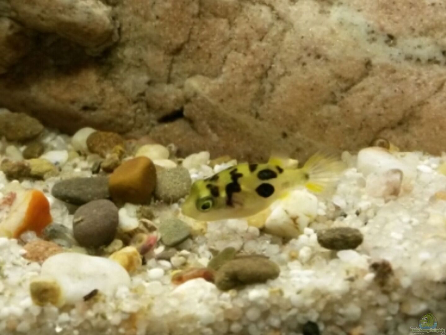 Mit meinem Bodengrund bin ich sehr zufrieden. Die Kugelfische suchen den Boden sehr genau ab und überlegen des öfteren, ob der Kiesel jetzt eine Schnecke ist oder nicht, bevor sie weiterschwimmen. So wird ihnen nicht langweilig
