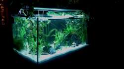 Etliche Garnelen, So an die 30 Perlhüner, 4 Diamantregenbogenfische, 4 Guppymännchen, 4Leopardbarben, und noch 2 Zwergschilderwelse. 6 Maronibuntbarsche