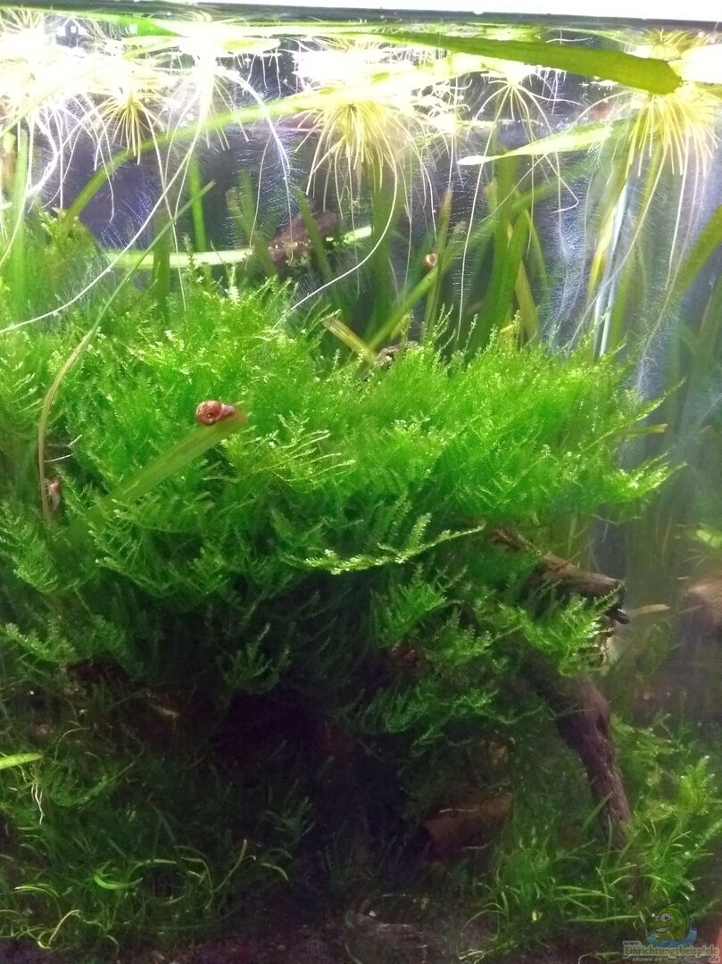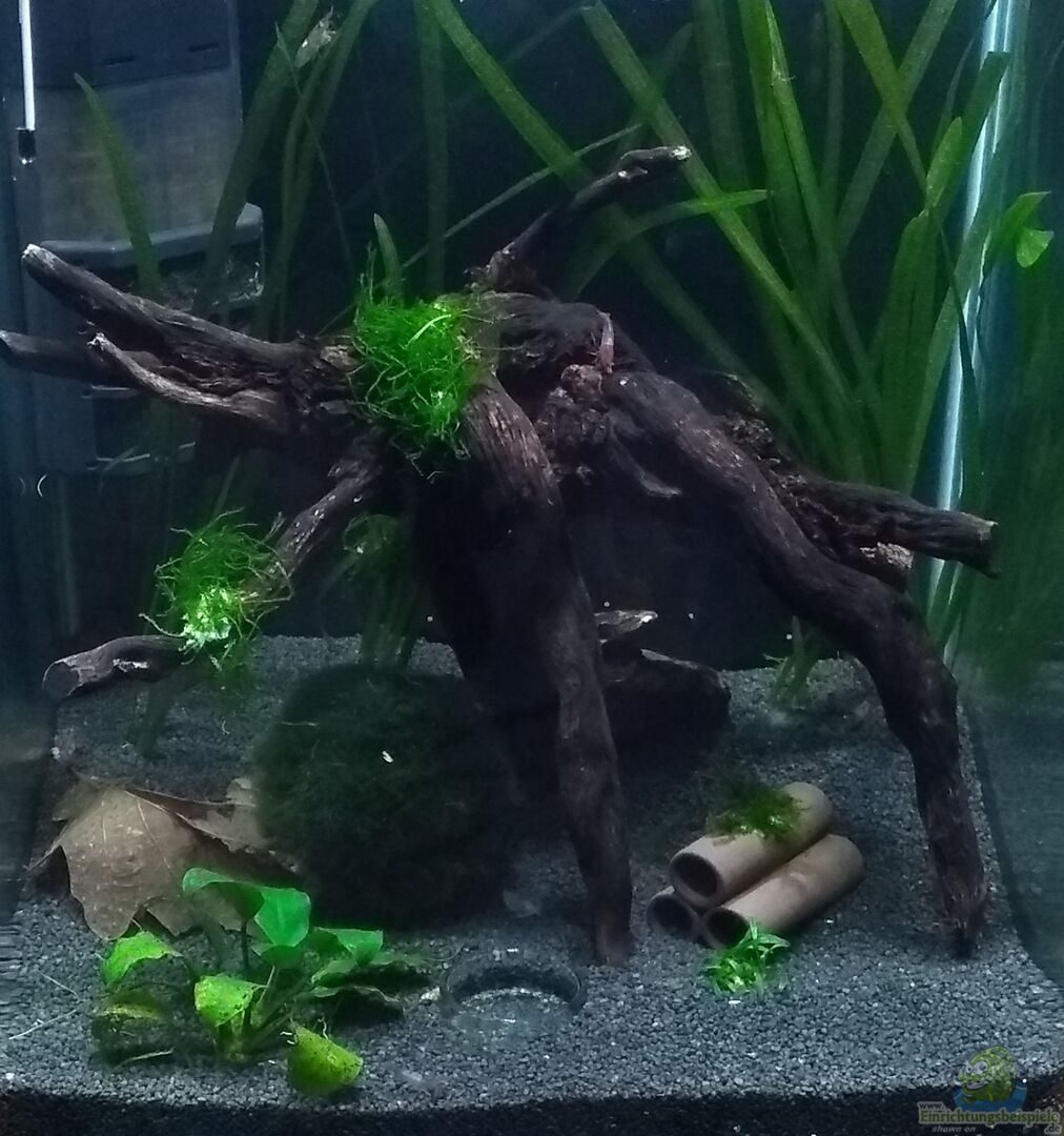 Aus diversen Gründen gab es mal wieder einen Beckentausch - Moritz wohnt jetzt in Bettas Home 2 bei Merlin - hier ist jetzt Maria eingezogen, ein Betta Splendens Weibchen. Das Moos wächst immer mehr und bietet den Garnelen auch genügend Schutz.