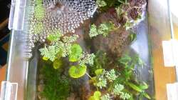 Habe durch die ersten freundliche Meinung zu meinem kleinen AQ gleich reagiert und eine Neu bzw. Umgestaltung gemacht. Der Bodengrund ist nun um mehr als die hälfte gesunken (ich hoffe nicht zu viel) und vorallem habe ich Ihn etwas stärker gebrochen, so dass er nun ca. 2-10mm misst bei dem Versuchsfilter und dem restlichen Aufbau ist es vorwiegend geblieben. die wirkliche Wassermenge ist nun 16l. Was die Werte angeht, so werde ich diese sobald stabil erneuern