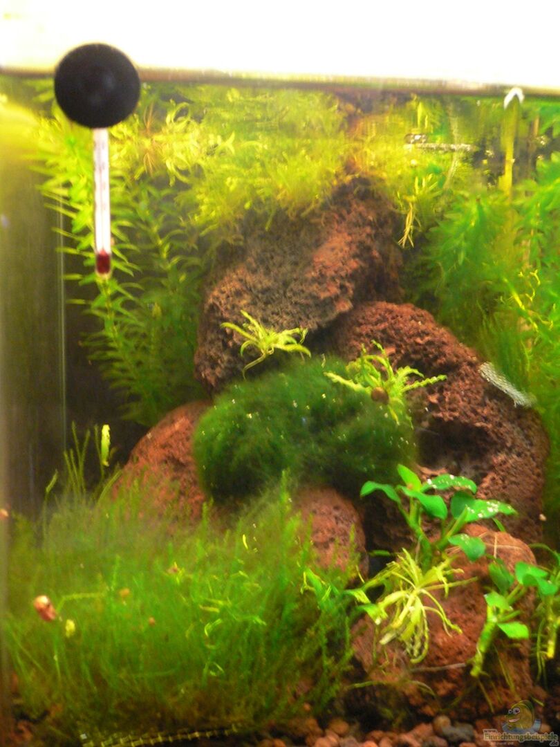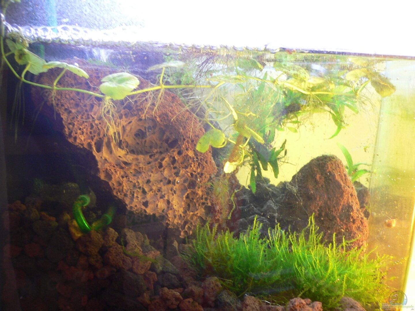 wie ich sehe, ist das ja hier `nur` ein Aufzuchtbecken.Optisch würde ich vielleicht noch etwas mehr Moose unterbringen, die krallen sich schön an der Lava fest.
