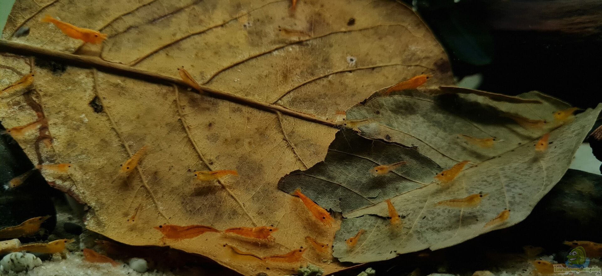 Zur Wasseraufbereitung kommt einiges an Laub und Blackwater Powder ins Aquarium. So kann ich den pH-Wert leicht unter 7 drücken.