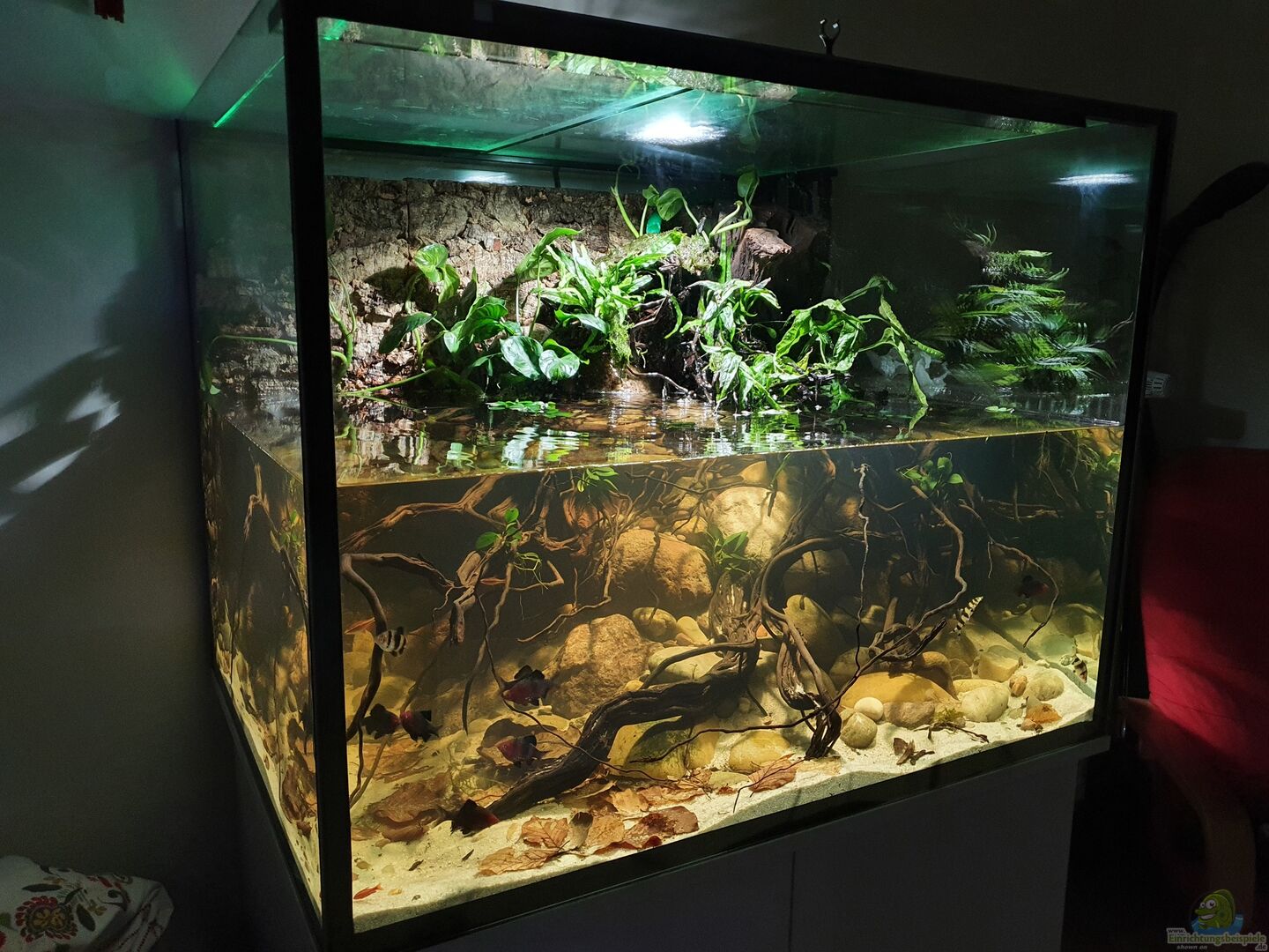 Das Aquarium ist eine Sonderanfertigung inklusive Unterschrank