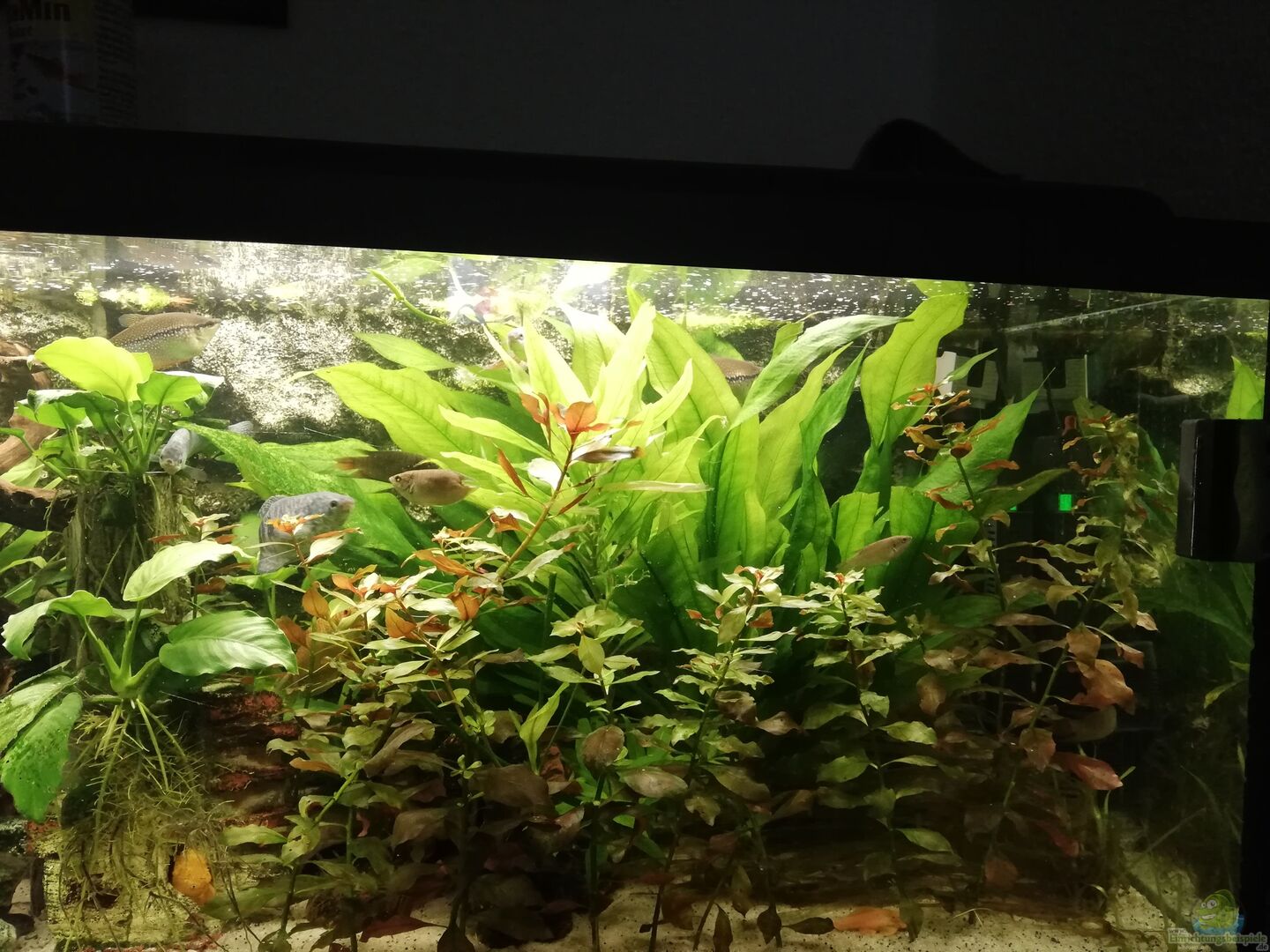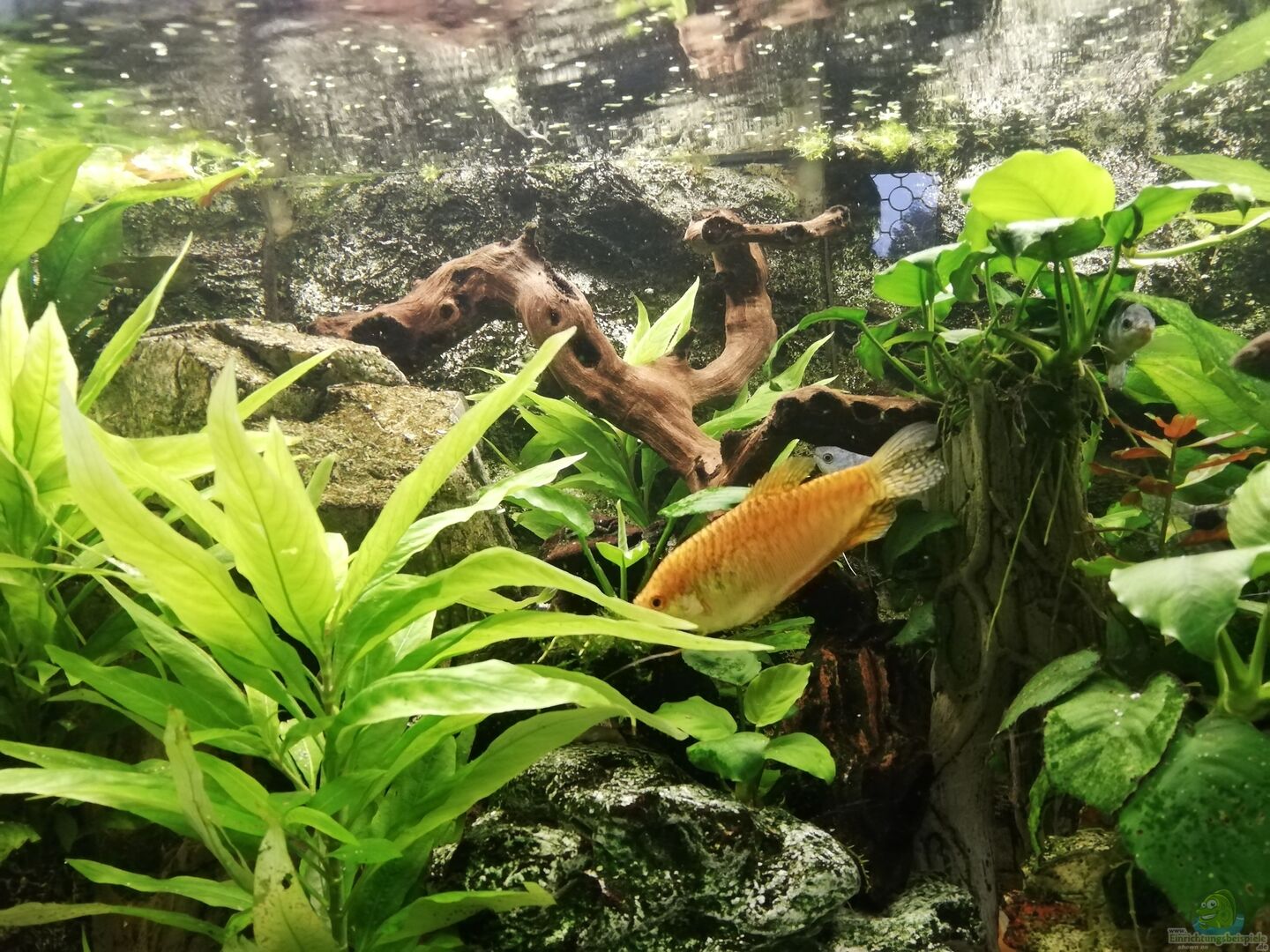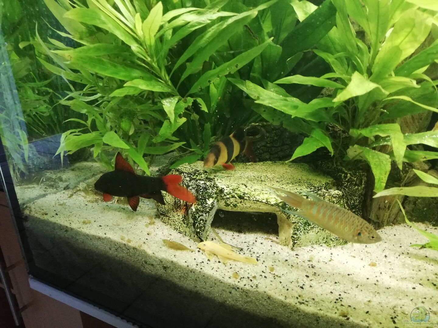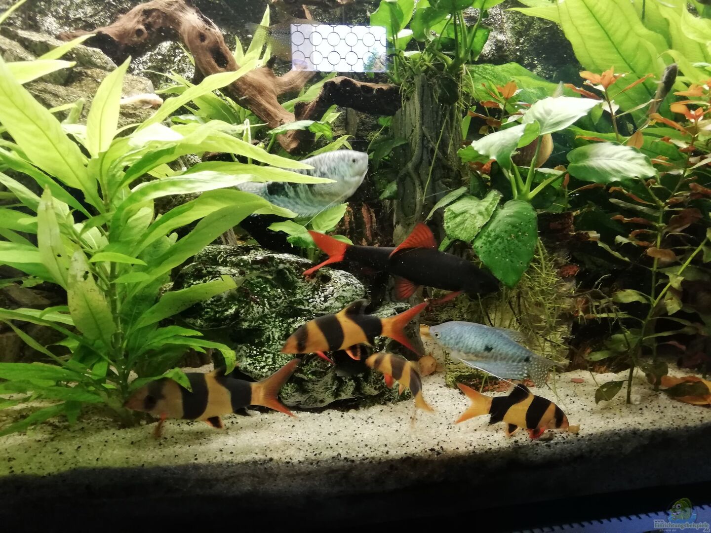Besatz Grosses Becken: 5x Goldener Antennen welse, 5x panzerwelse, 2x grüner fransenlippler geschlecht unbekannt.3x Mosaik fadenfische., 4x Fadenfisch gelb, rot und 2x blau und 12 paradiesfische 11 aus einer nachzucht hier, das weibchen leider nach der eiablage gestorben, 5x Prachtschmerlen noch klein.Die Faden und Paradiesfische und die goldfarbenen Welse wohl auch zumindet tut sich da mit der grösse nix mehr. sind ausgewachsen