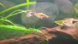 Diese habe ich noch der Auflösung meines kleinen SüdOst Asien Beckens (wo ich sie schon etwa 1 Jahr gehalten habe) mit in dieses genommen. Sie sind so gut wie nie zusehen, doch noch alle vollzählig und wohl genährt, obwohl ich sie noch nie beim fressen beobachten konnte.