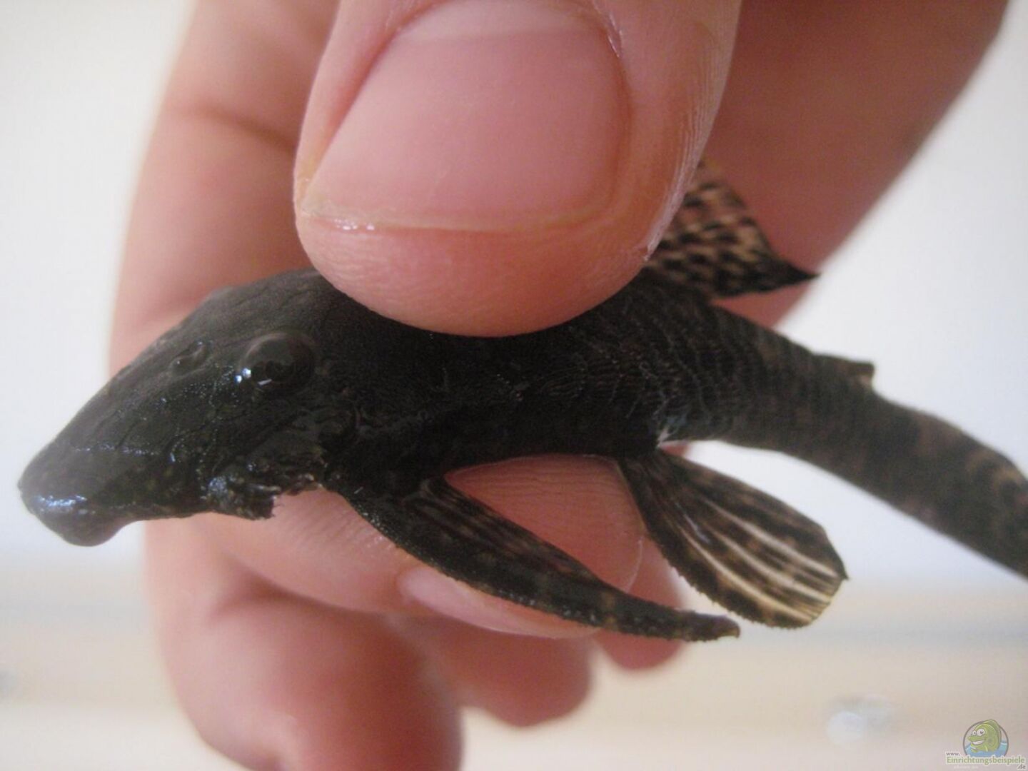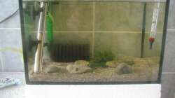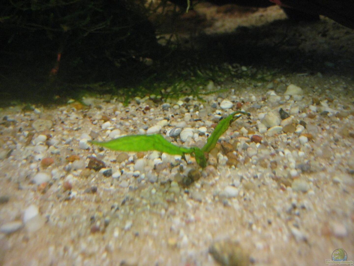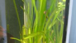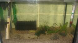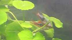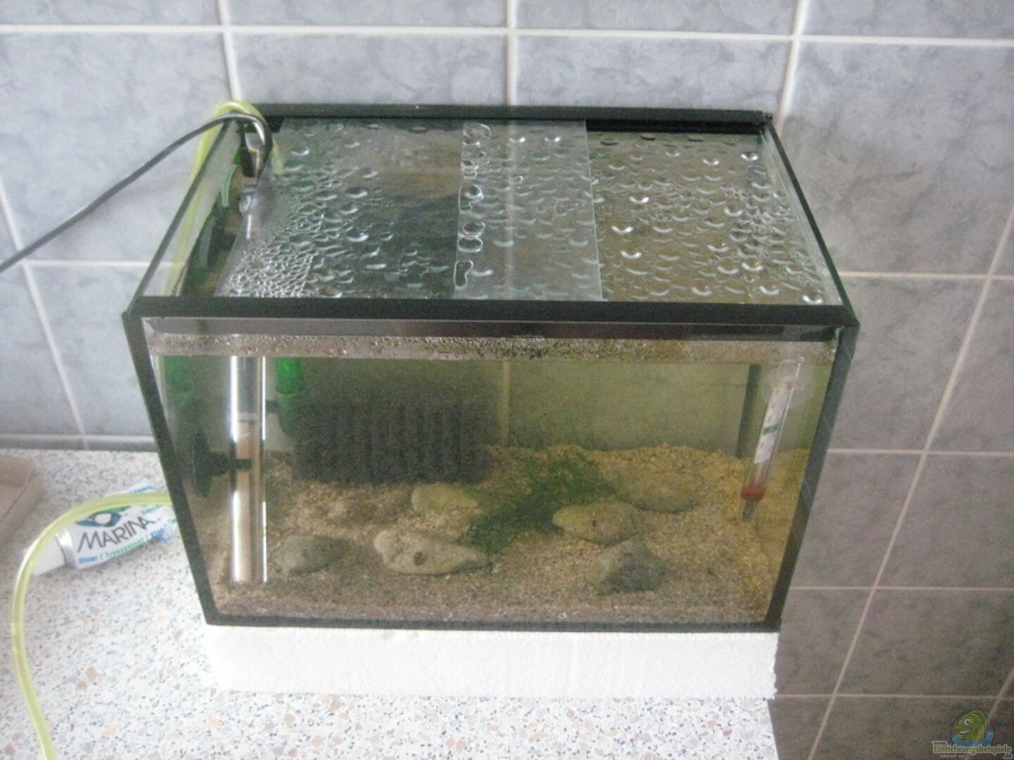 Gestern hab ich dann noch ein Baby im Gro??en Becken entdeckt, was gerad mal so knapp 2mm lang ist. Es befindet sich jetzt allein im Netzbrutkasten, wenn es schnell wächst, kommt es bald zu den anderen ins 10 Literbecken.