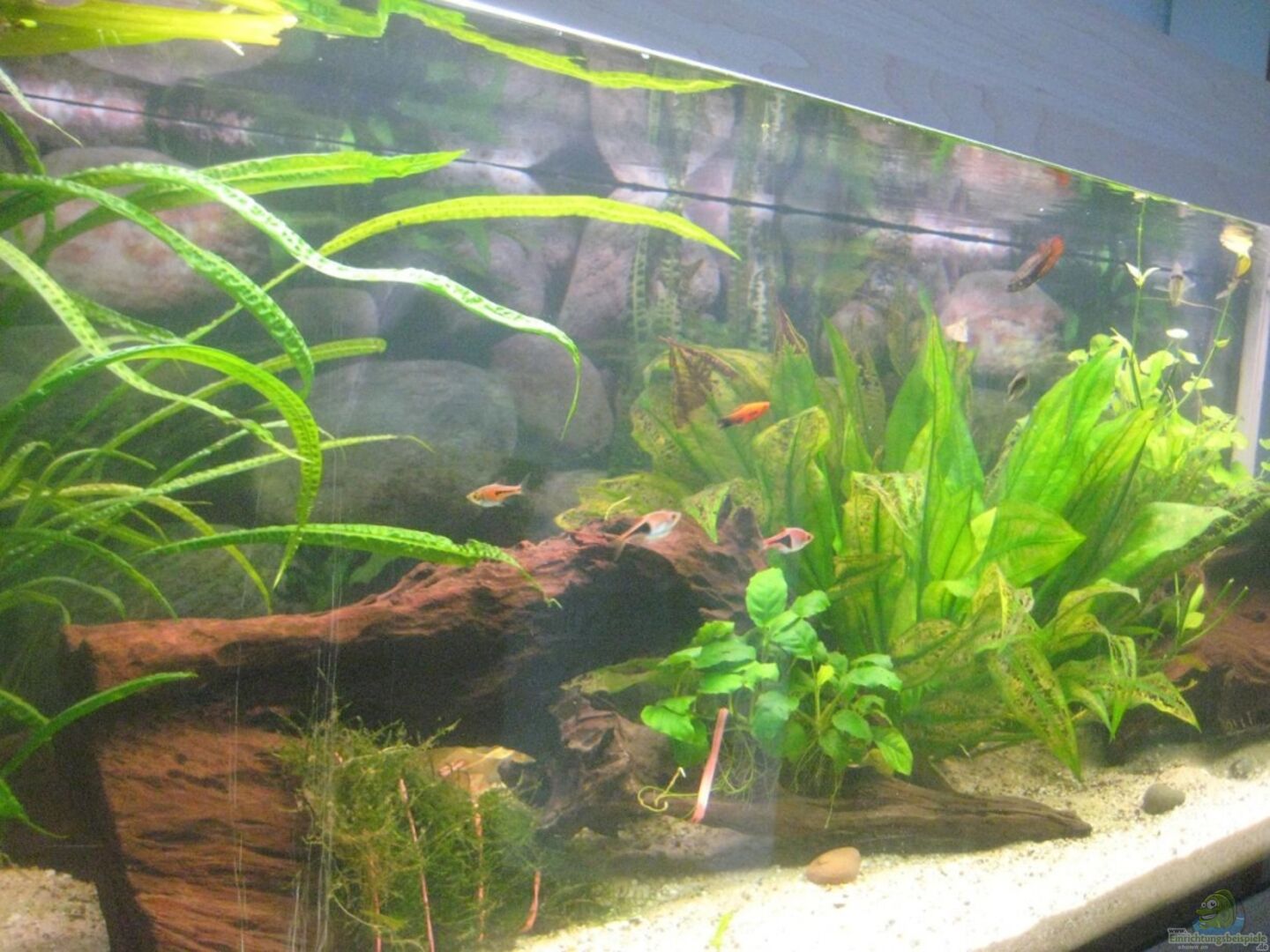 Was Ich sehe gefällt mir sehr gut.Op sich der Sand, und der HMF in deinen Becken bewähren, wird sich zeigen.Beleuchtung könnte etwas zu schwach sein, aber diese aufzustocken dürfte bei deier Abdeckung kein Problem sein.Klasse finde ich die Zurückhaltung beim Besatz.Das mit den Ancitrus würde ich mir noch mal überlegen, deine Echinodorus sieht schon ganz schön angefressen aus.