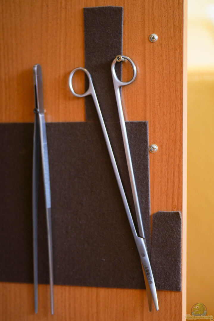 Um eine gewisse Tiefe zu schaffen, wurde dunkelgrüne Bastelpappe von au??en auf der hinteren Seite des Aquariums installiert.