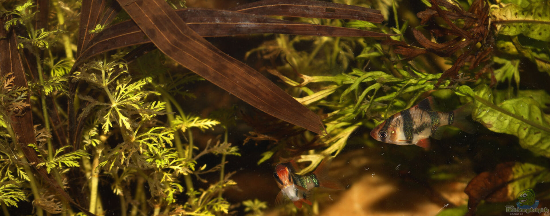 Teilweise wurde im Vordergrund Schwimmraum gelassen und teilwesie sind stellen im Hintergrund als Schwimmraum belassen, da auch Sumatra Barben Männchen gerne Reviere abstecken ist dadurch auch Sichtschutz und Rückzugsraum entstanden.