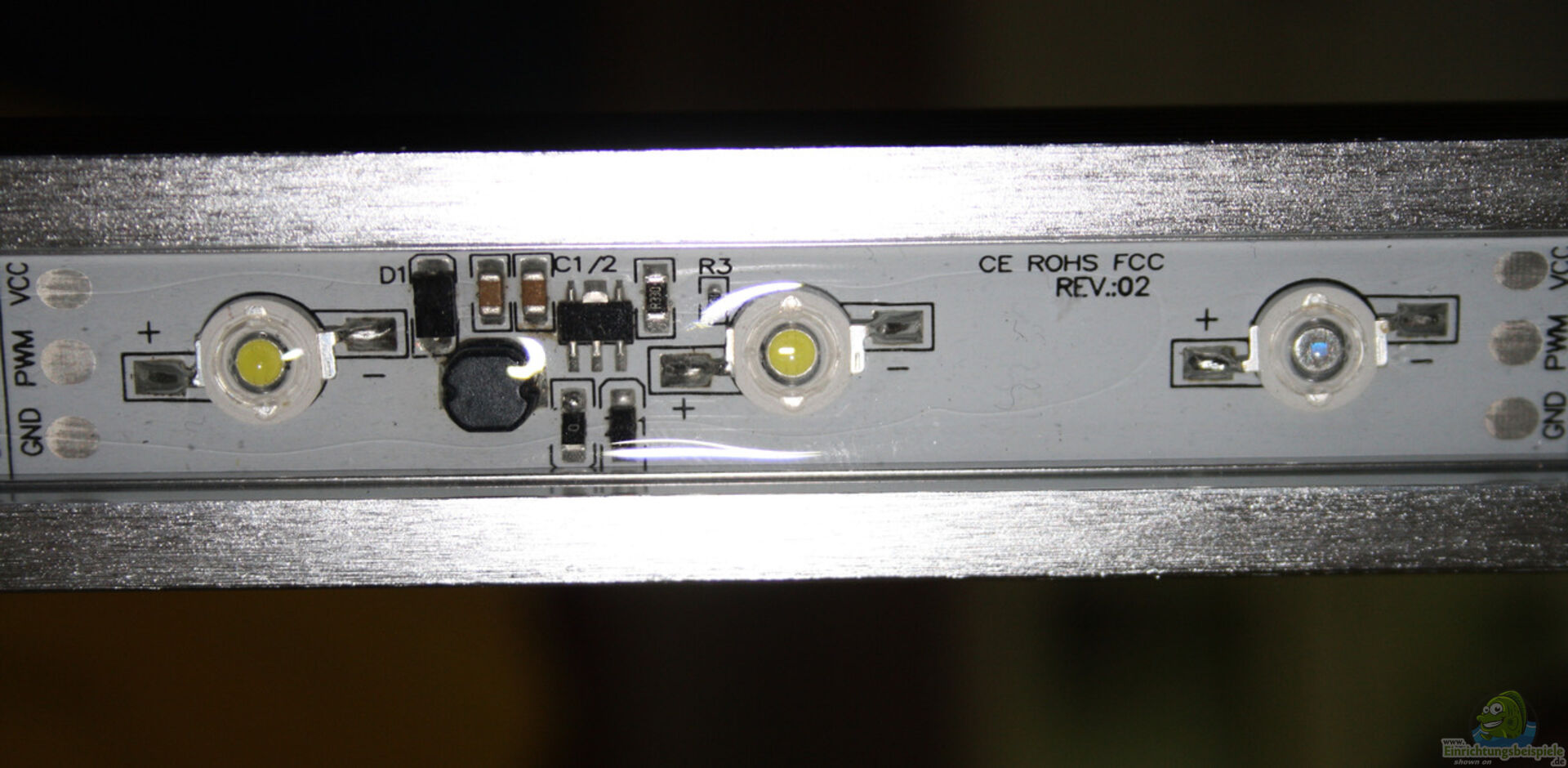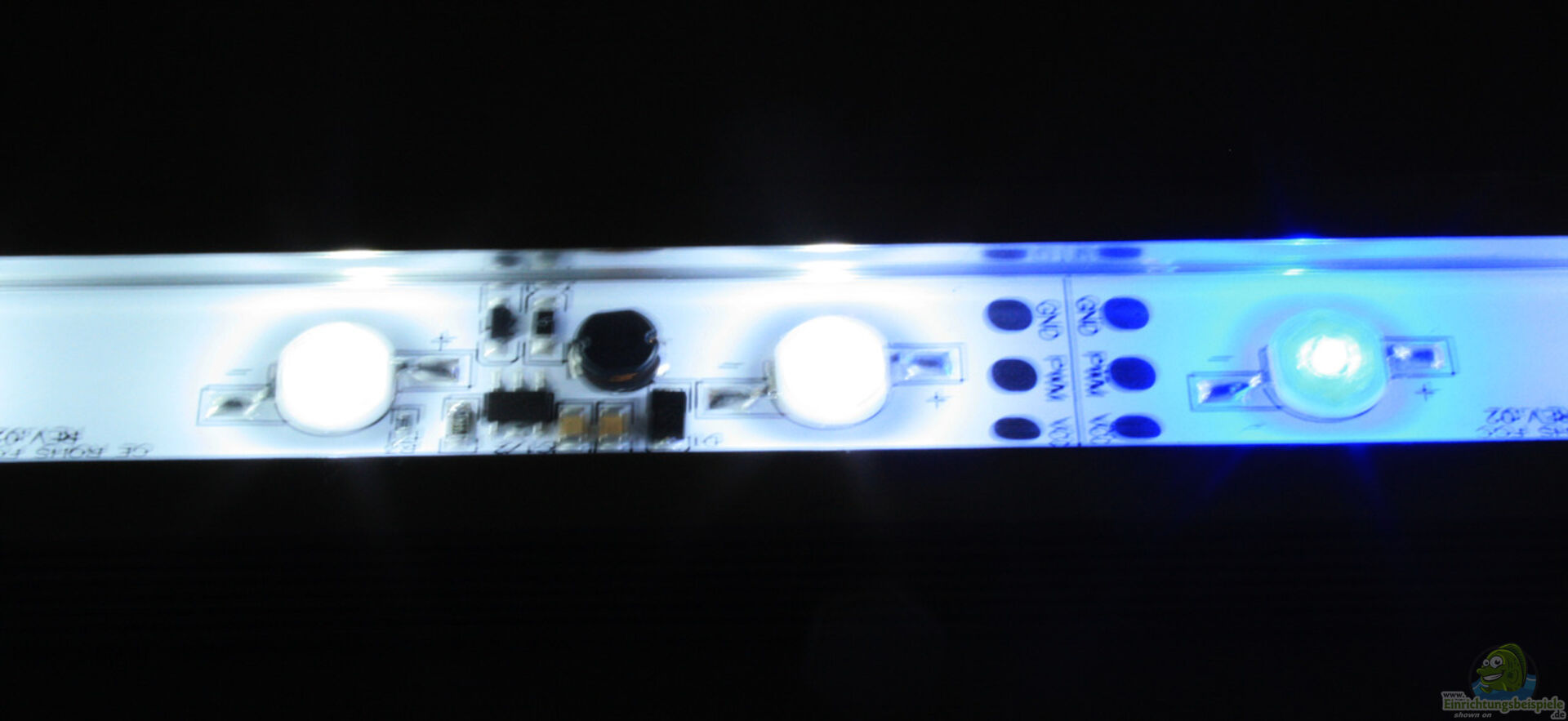 Die kleinere ist 30 cm lang und genauso bestückt mit den kaltweissen und blauen LEDs, beide laufen über GHL.