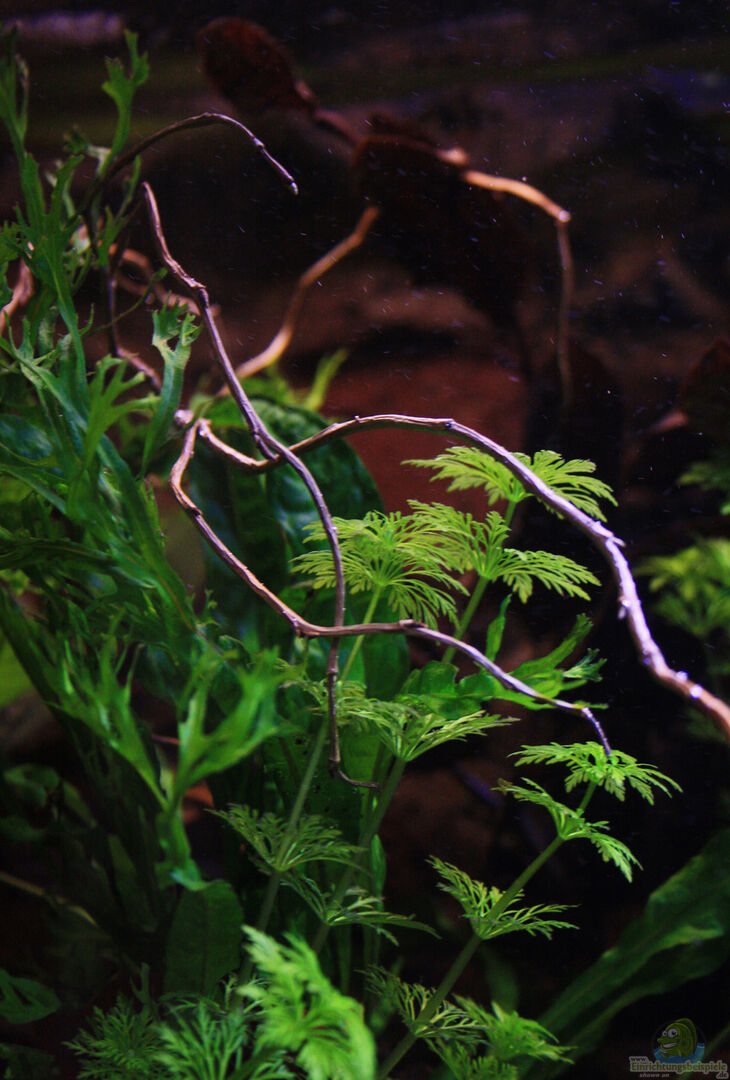 Das Becken wurde komplett umgestaltet, und dabei ahbe ich mich von einigen Pflanzen getrennt, ein 120 cm langer wunderschöner Buchenast kam dazu sowie viel mehr Holz.Ebenfalls wurden die noch vorhandenen Pflanzen radikal zurück geschnitten.Augenmerk wird jetzt mehr auf Holz gelegt dabei ist der neue Ast filigran verzweigt und streckt sich über die fast gesamte Länge des Aquariums.