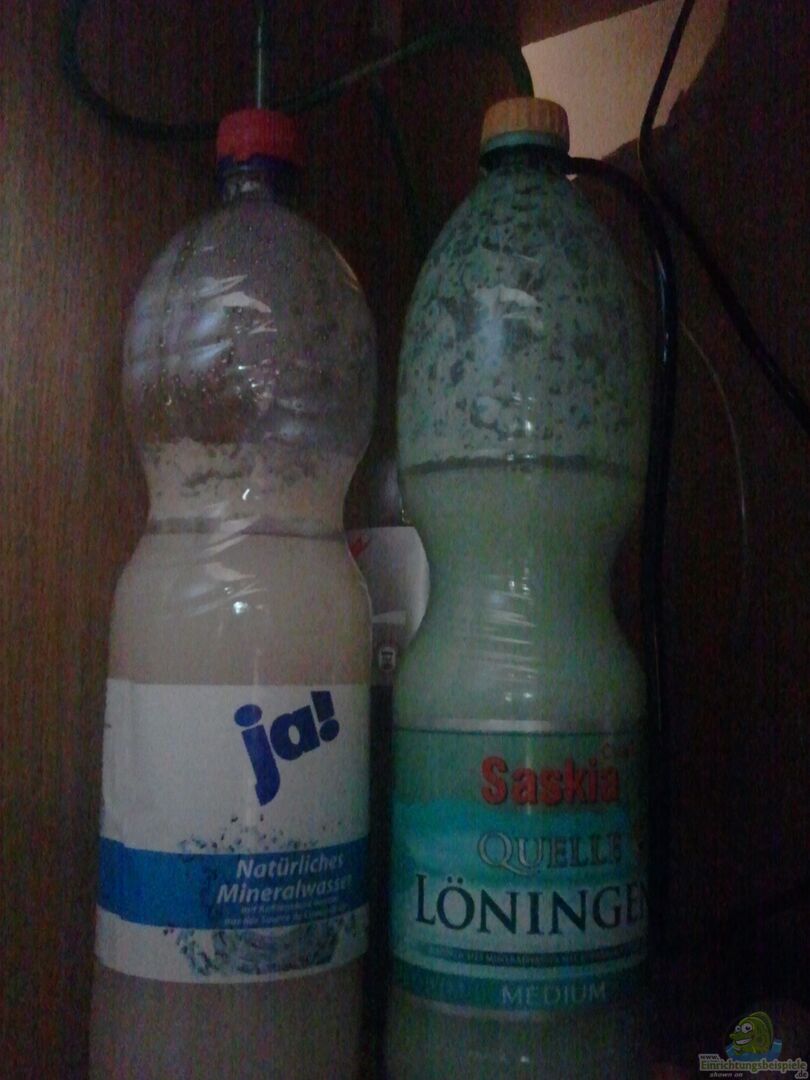 Desweiteren dünge ich mit einer Bio Co2-Anlage. Bestehend aus zwei Reaktoren und einer "Waschflasche" um zu verhindern, das die Co2 Lösung bei zu starkem aufschäumen in das Aquarium gelangt.