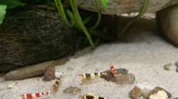Die Zwergtigerschmerlen sind extrem scheu und sehr schwierig zu fotografieren. Im Händlerbecken sind sie ziemlich uninteressiert von den "Zuschauern" umhergewuselt (ok dort hatten sie auch nicht allzu viele Versteckmöglichkeiten) aber bei mir zeigen sie sich seit Wochen nur sehr zaghaft. Eigentlich schade, da sie sehr hübsch gefärbt sind und ein interessantes Sozialverhalten zeigen. Hat jemand einen Tipp, dass sie ihre Scheu etwas ablegen?