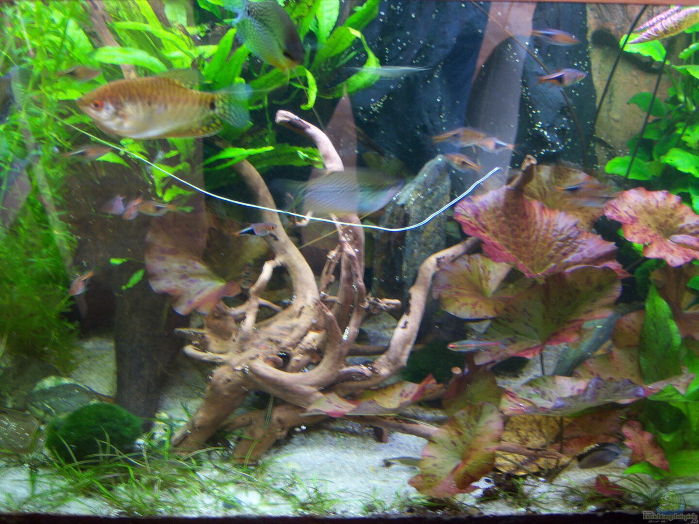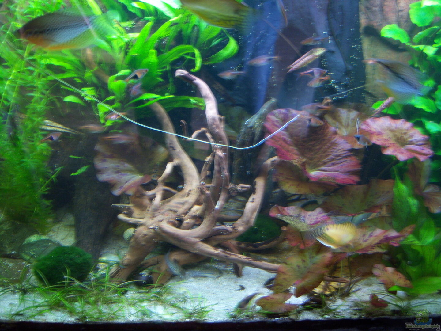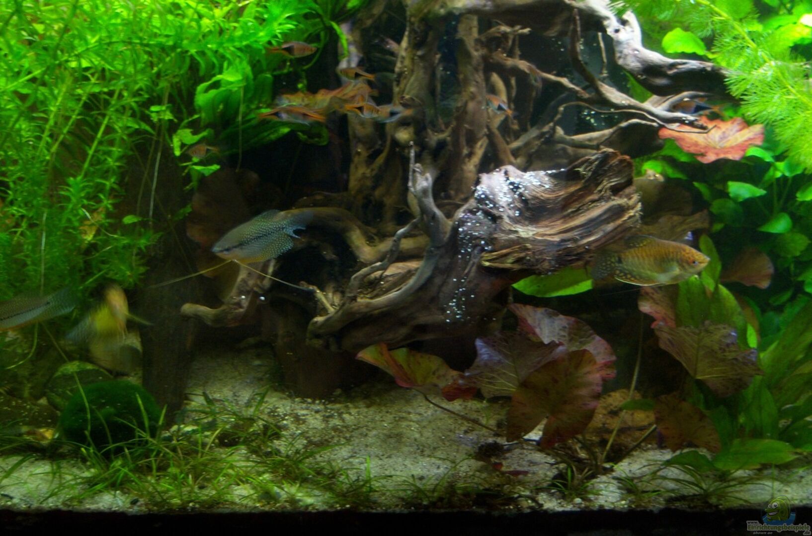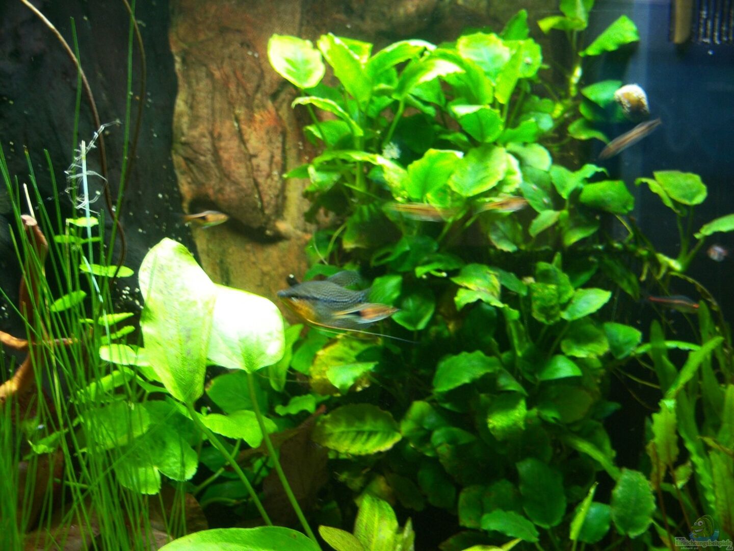 - die gro??e Valisnerie fängt langsam an zu fluten genau so wie die Wasserpest. Dadurch wird das Aqua auch ein wenig dunkler, was den Fadenfischen sicher zu Gute kommt. Die Schraubenvalisnerie auf der rechten Seite braucht noch ein wenig Zeit.