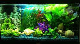 Wie viele Anfänger war ich vor 3 Jahren noch schwer von Plastikdeko und unnatürlichen Farben begeistert. Dementsprechend richtete ich mein Becken ein (Thema "Posseidon"). Heute sieht mein Becken "etwas" anders aus. ??brig geblieben ist lediglich der schwarz-blaue Kies, den ich vielleicht mal ersetzen werde durch schwarzen Kies - sollte ich mal zu viel Zeit haben.