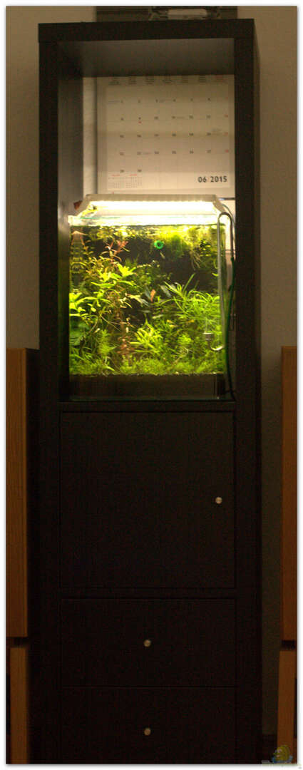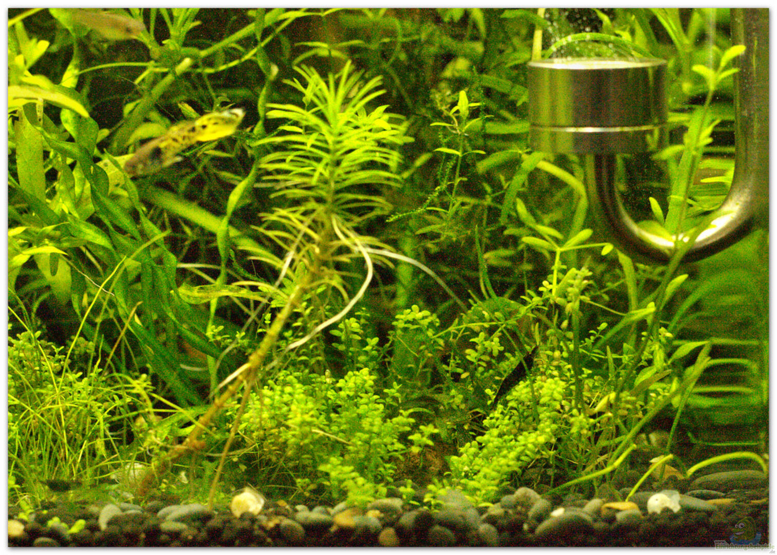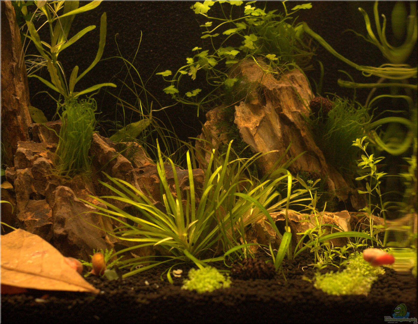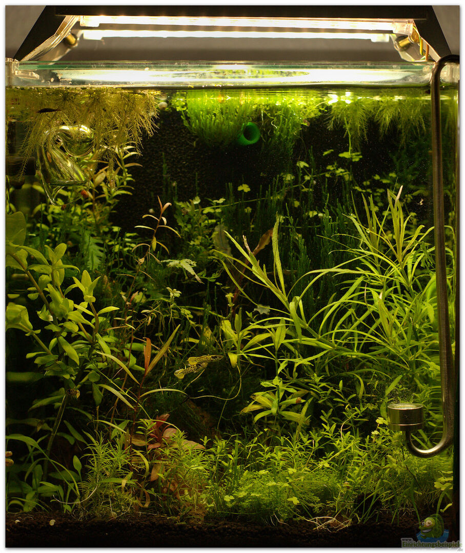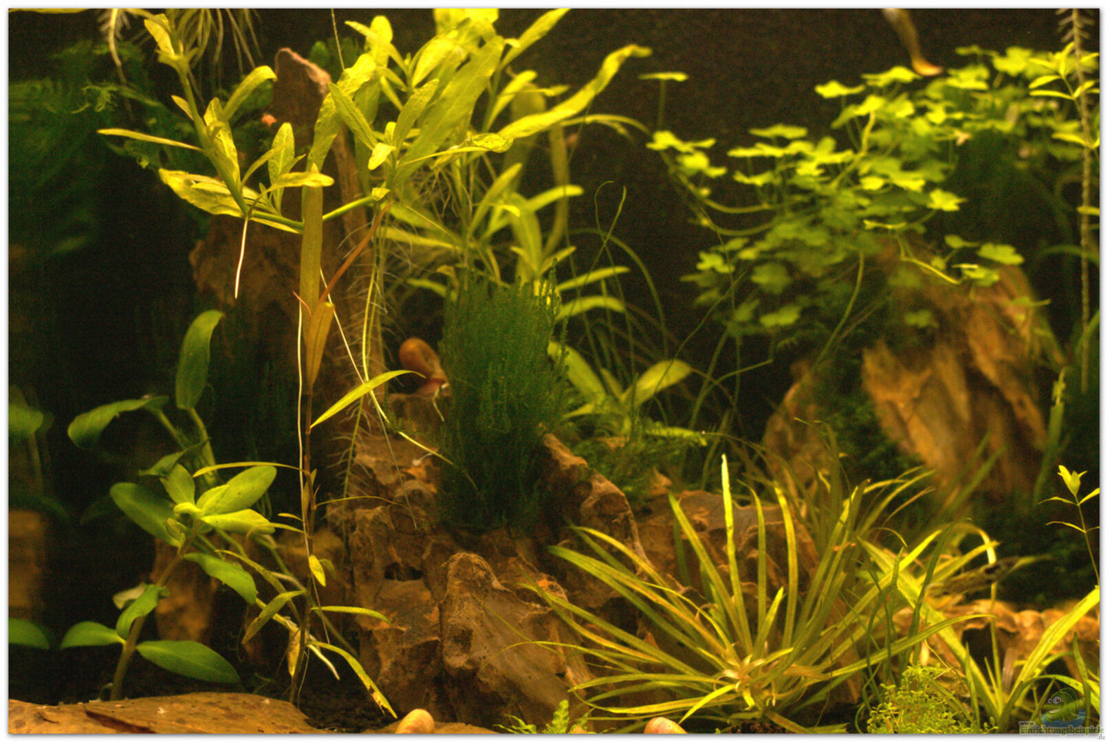 21.02. 2015 Bild hinzugefügt, Pflanzenliste vervollständigt, Wasserwechsel hinzugefügt. Bis auf vereinzelte Fadenalgen und ein bisschen Belag auf den Scheiben läuft das Becken problemlos.