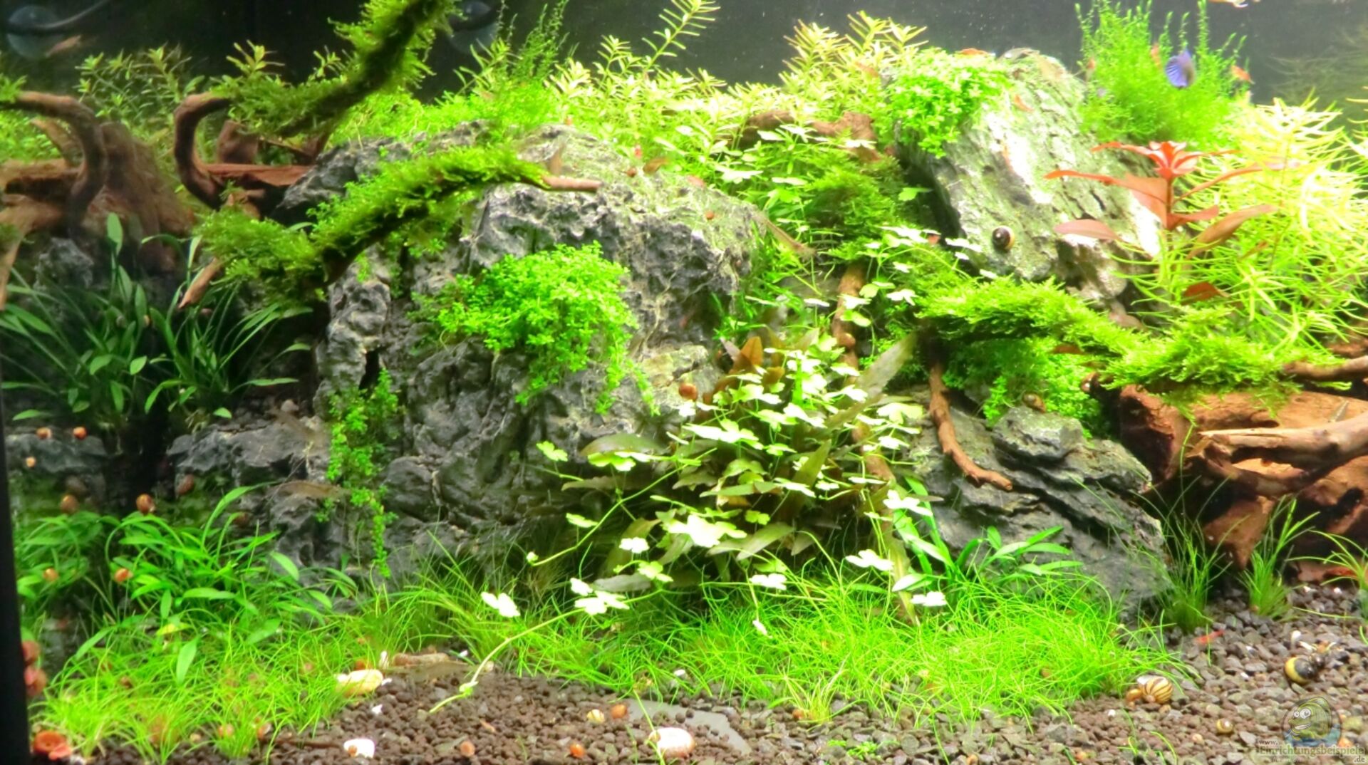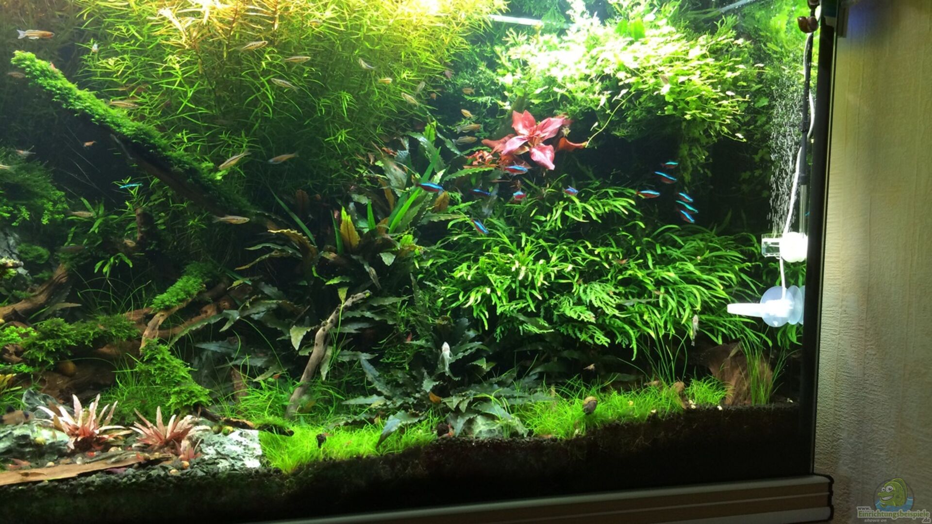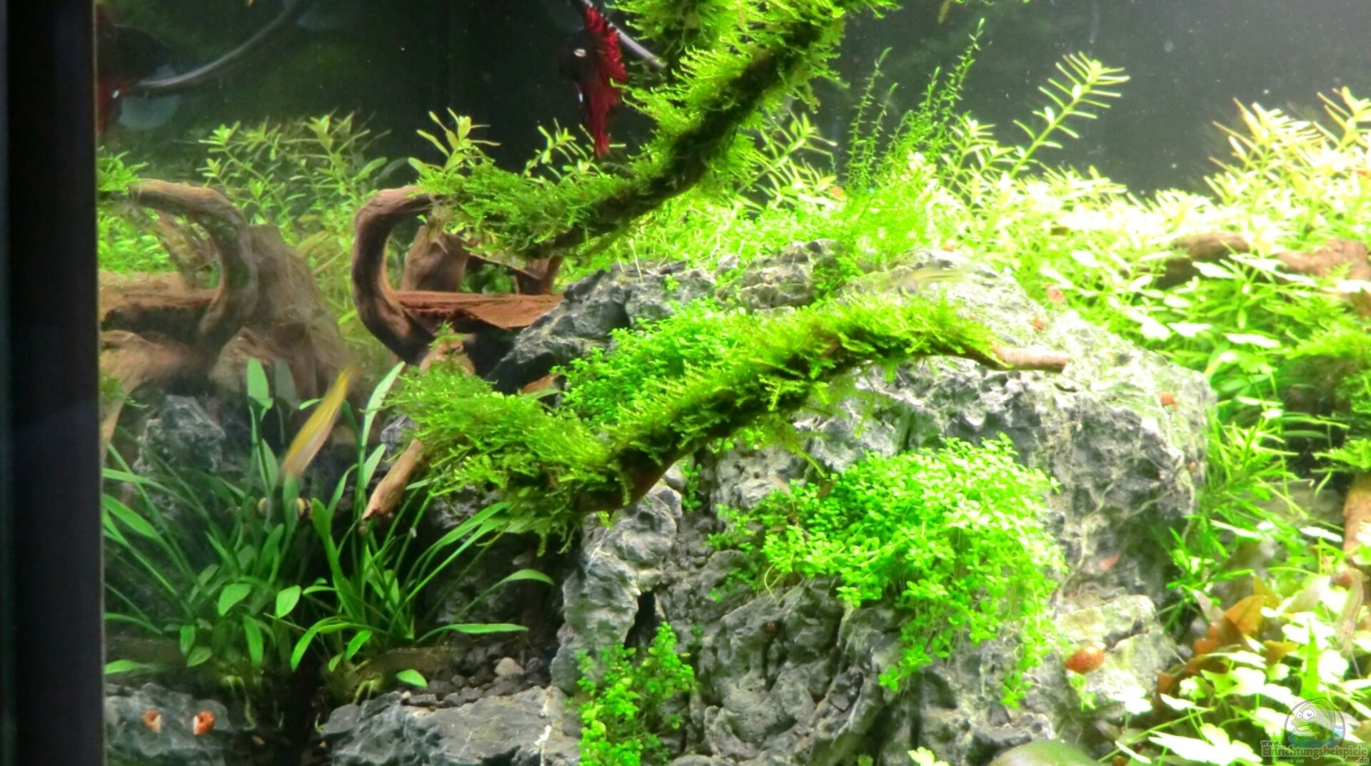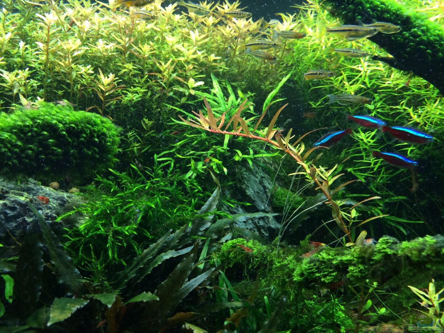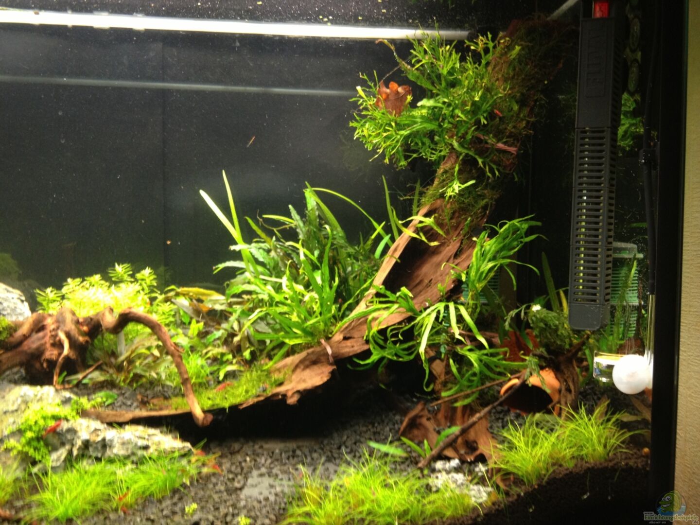 - heute sind die ersten Garnelen und otos aus dem übergangsbecken eingezogen um mit der Algen vorbeugung zu beginen
