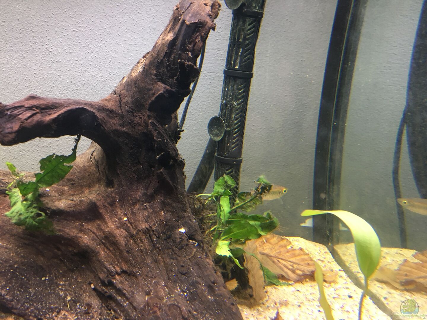 Die ersten zwei Kongosalmler eingesetzt. Laub wieder gerichtet. Faulende Pflanzenblätter entfernt.
