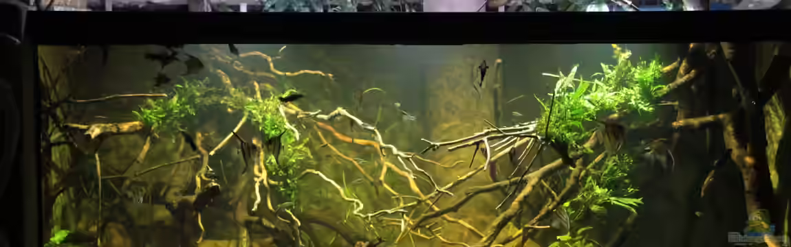 Inzwischen haben die Rüsselbarben auch den letzten Bakterienrasen von den Wurzeln gefressen und das Wasser ist super klar.